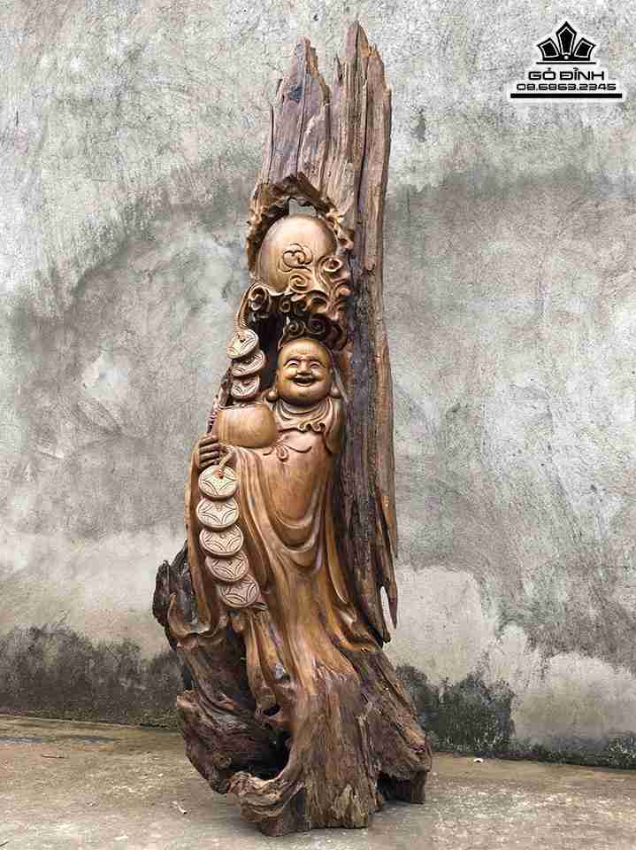 Tượng Phật Di Lặc Đứng Gỗ Bách Xanh Cao 139 Ngang 46 Sâu 33 (cm)