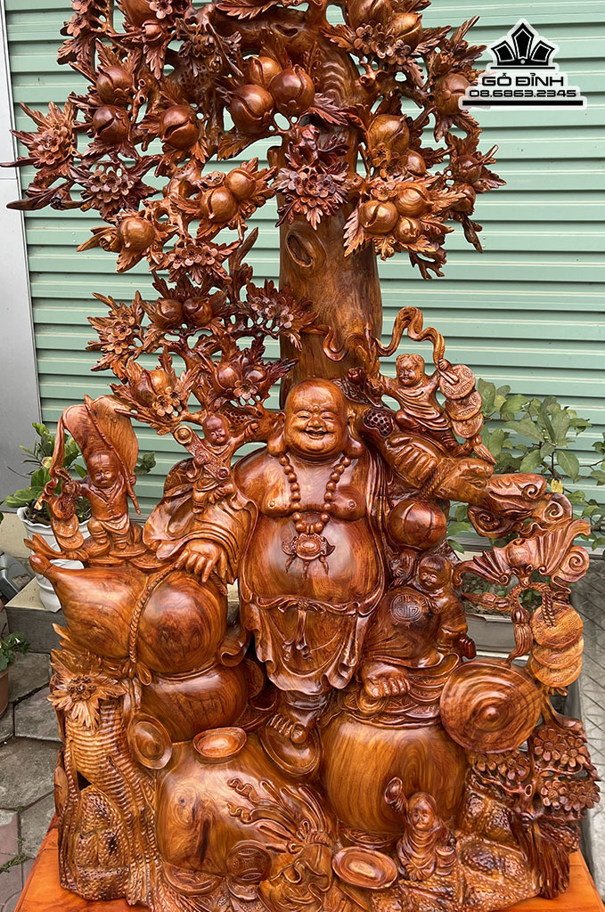 Tượng Phật Di Lặc Đứng Gốc Đào Gỗ Hương
