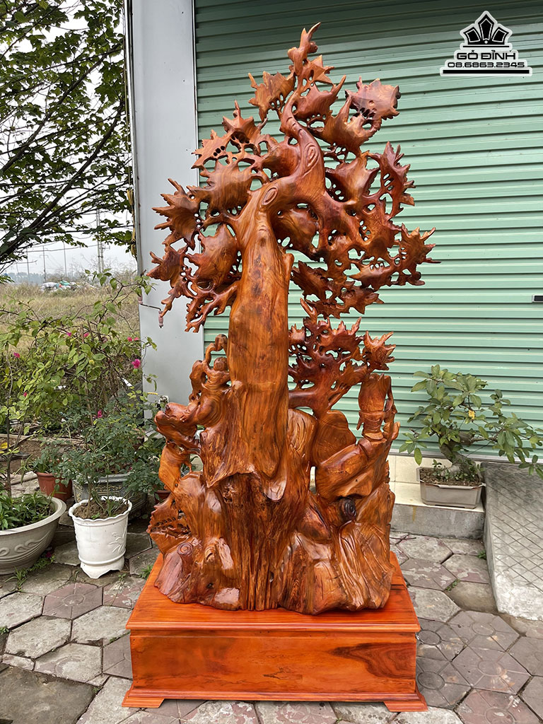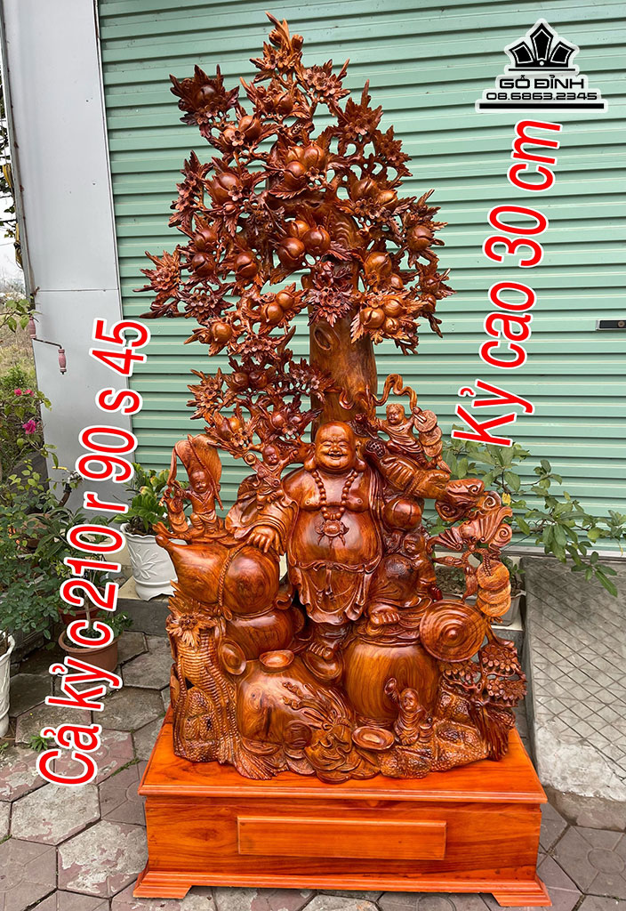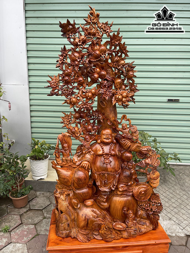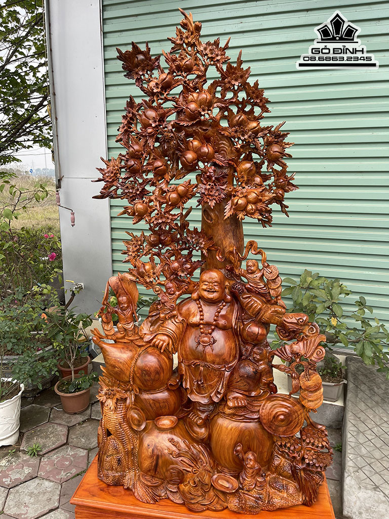 Tượng Phật Di Lặc Đứng Gốc Đào Gỗ Hương Cao 210 Rộng 90 Sâu 45 (cm) Cả Kỷ