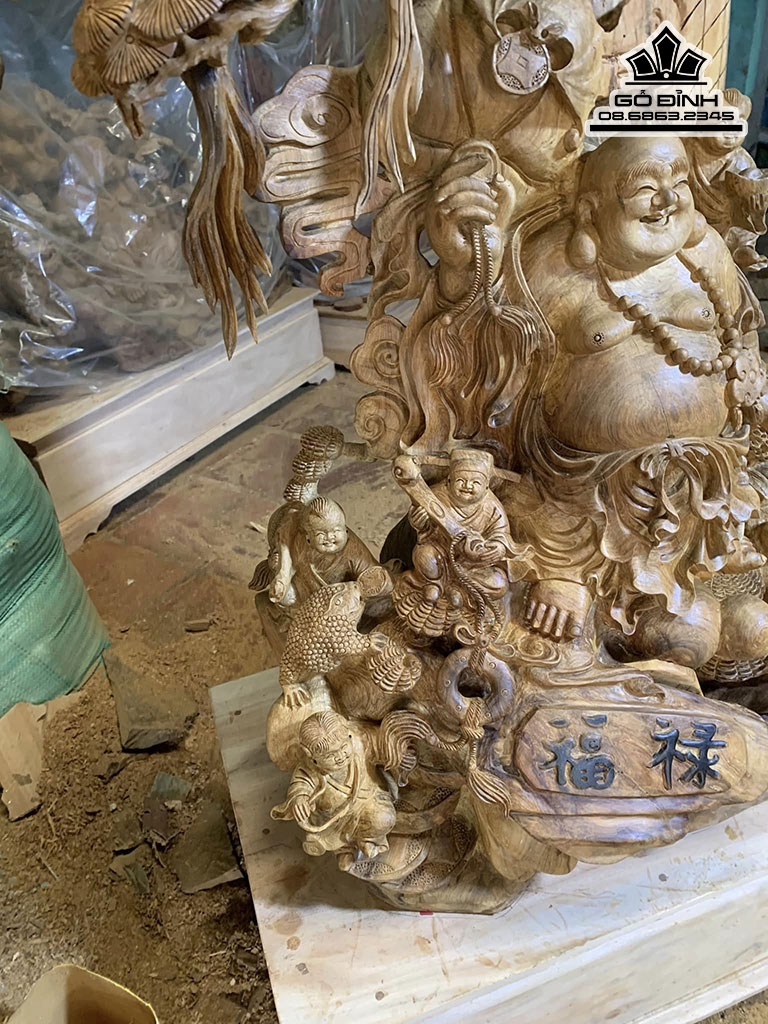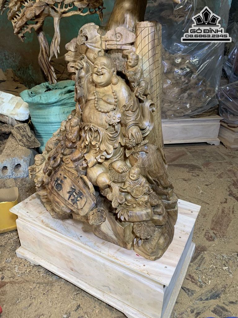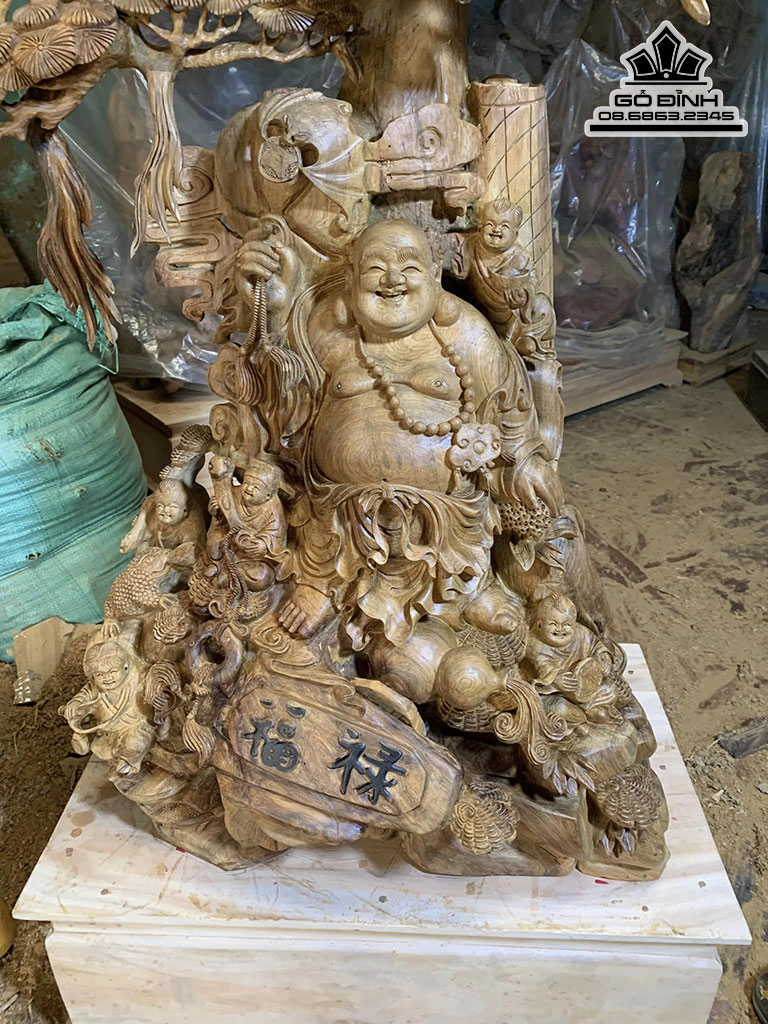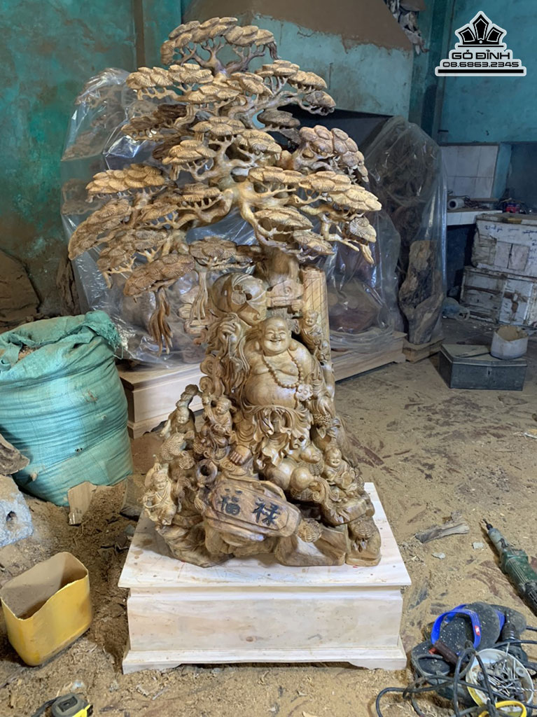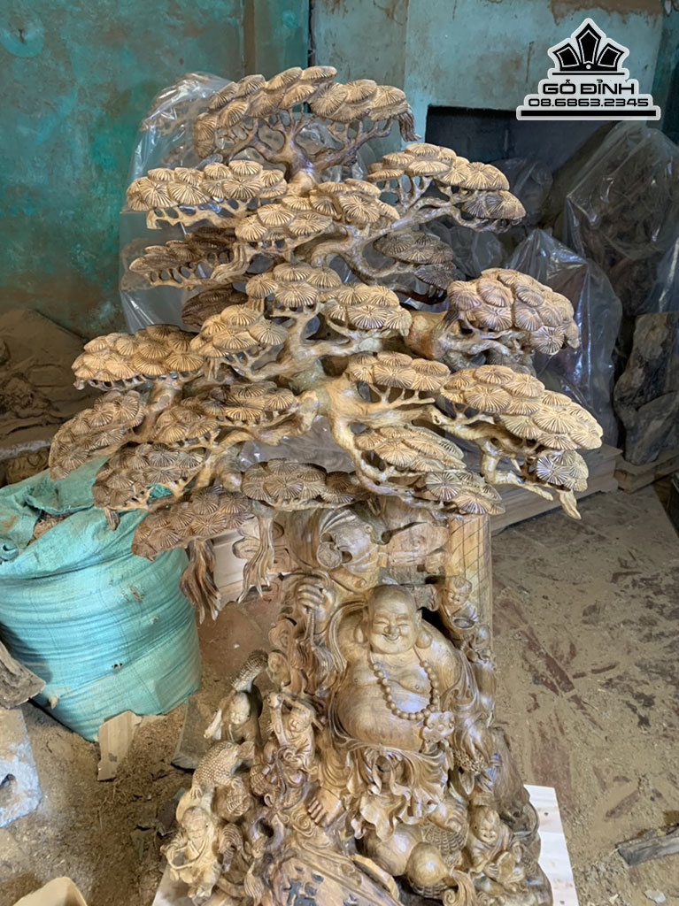 Tượng Phật Di Lặc Đứng Gốc Tùng Gỗ Bách Xanh