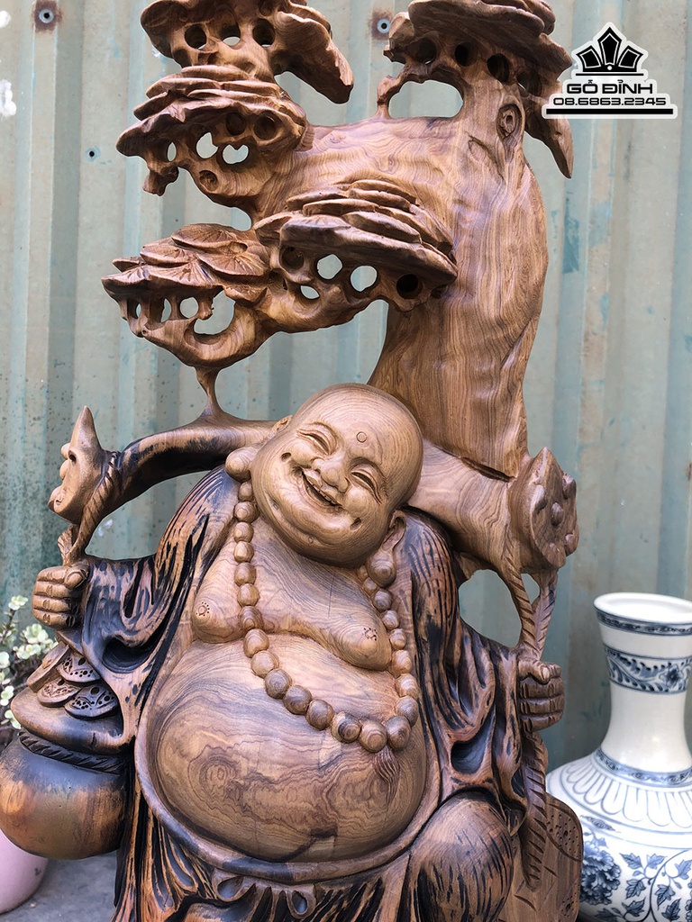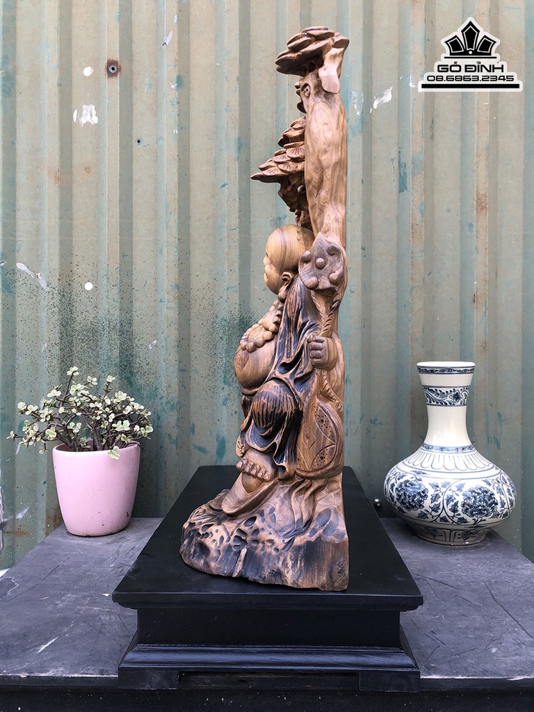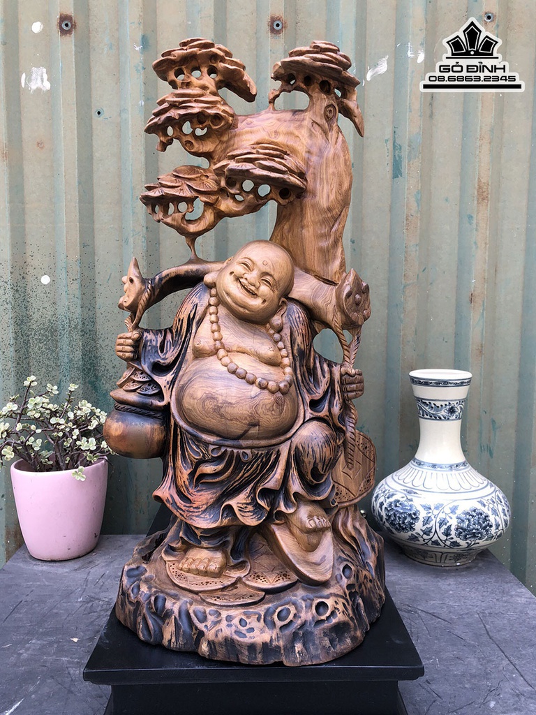 Tượng Phật Di Lặc Đứng Gốc Tùng Gỗ Bách Xanh
