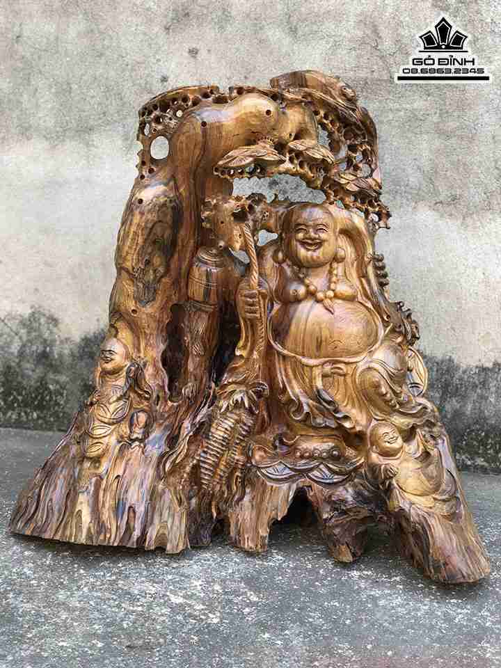 Tượng Phật Di Lặc Đứng Gốc Tùng Gỗ Bách Xanh Cao 55 Rộng 56 Sâu 28 (cm)