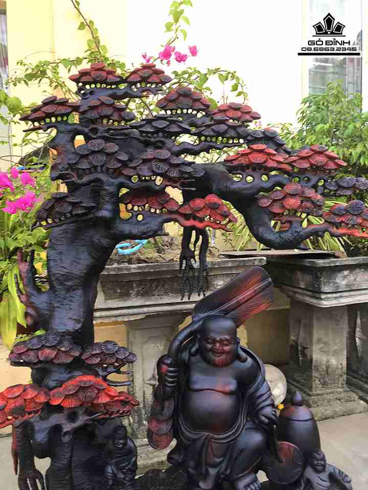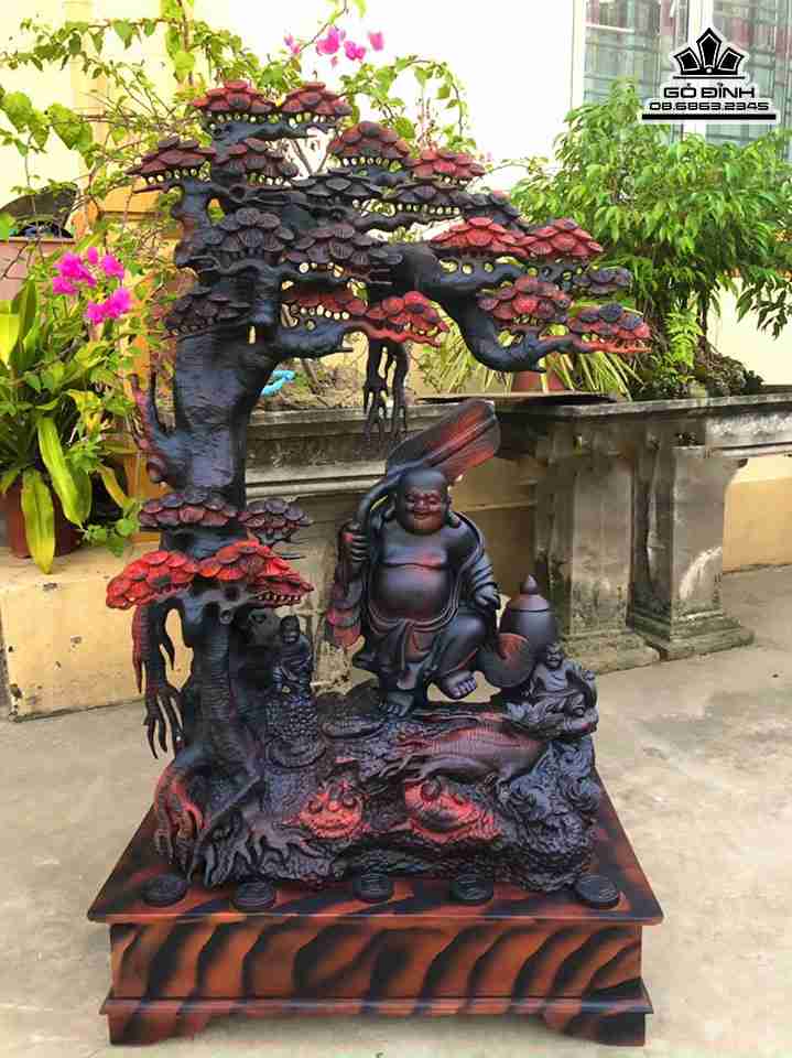 Tượng Phật Di Lặc Đứng Gốc Tùng Gỗ Trắc