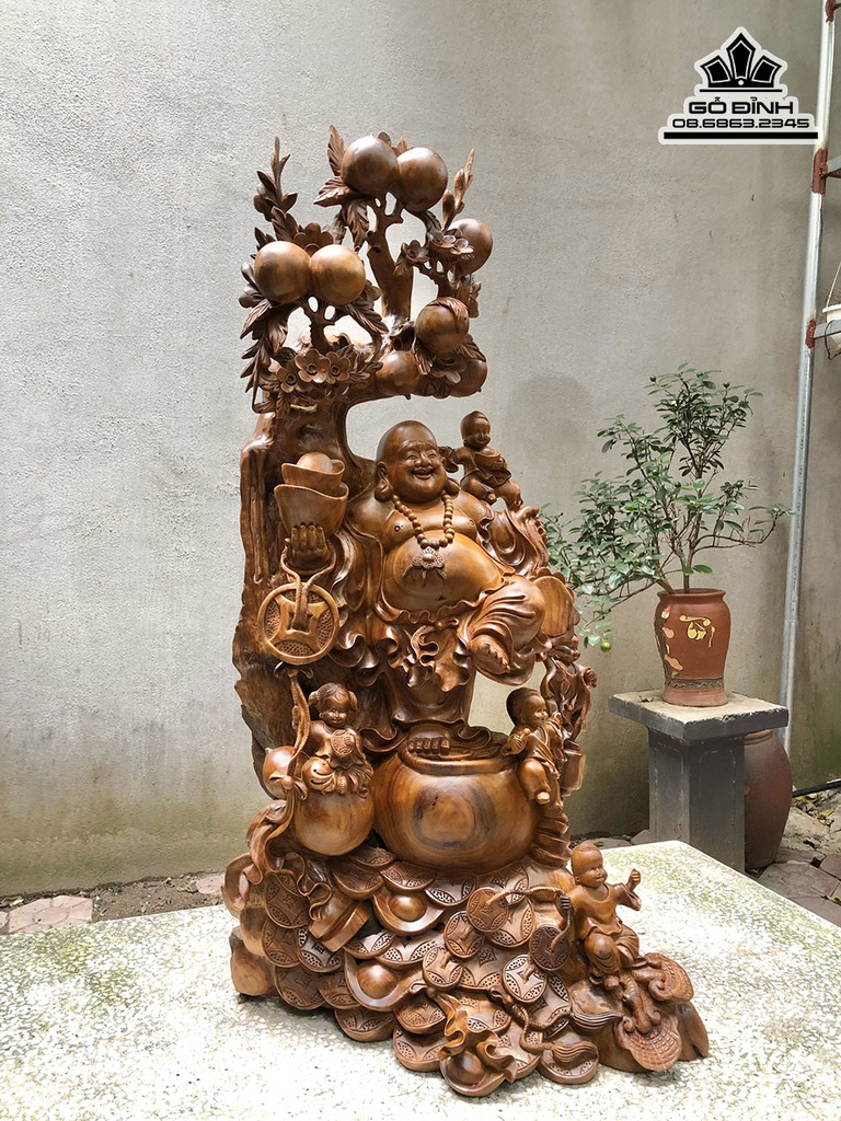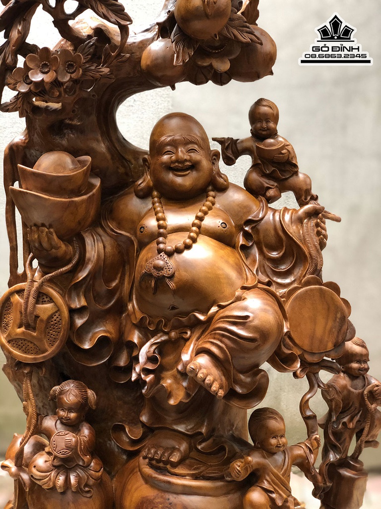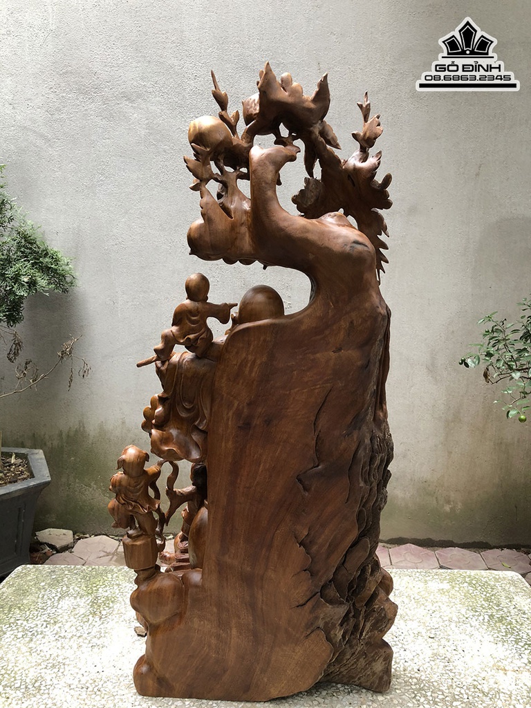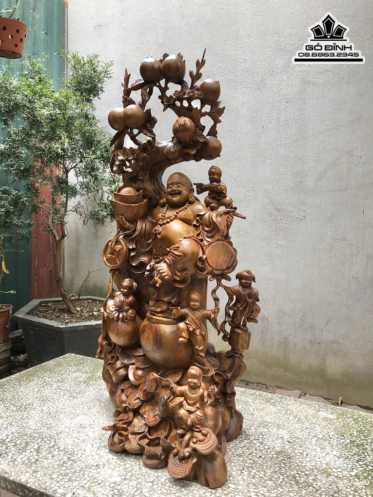Tượng Phật Di Lặc Đứng Gốc Tùng Gỗ Xá Xị (Gù Hương)