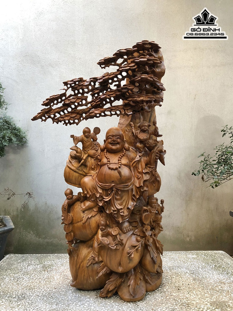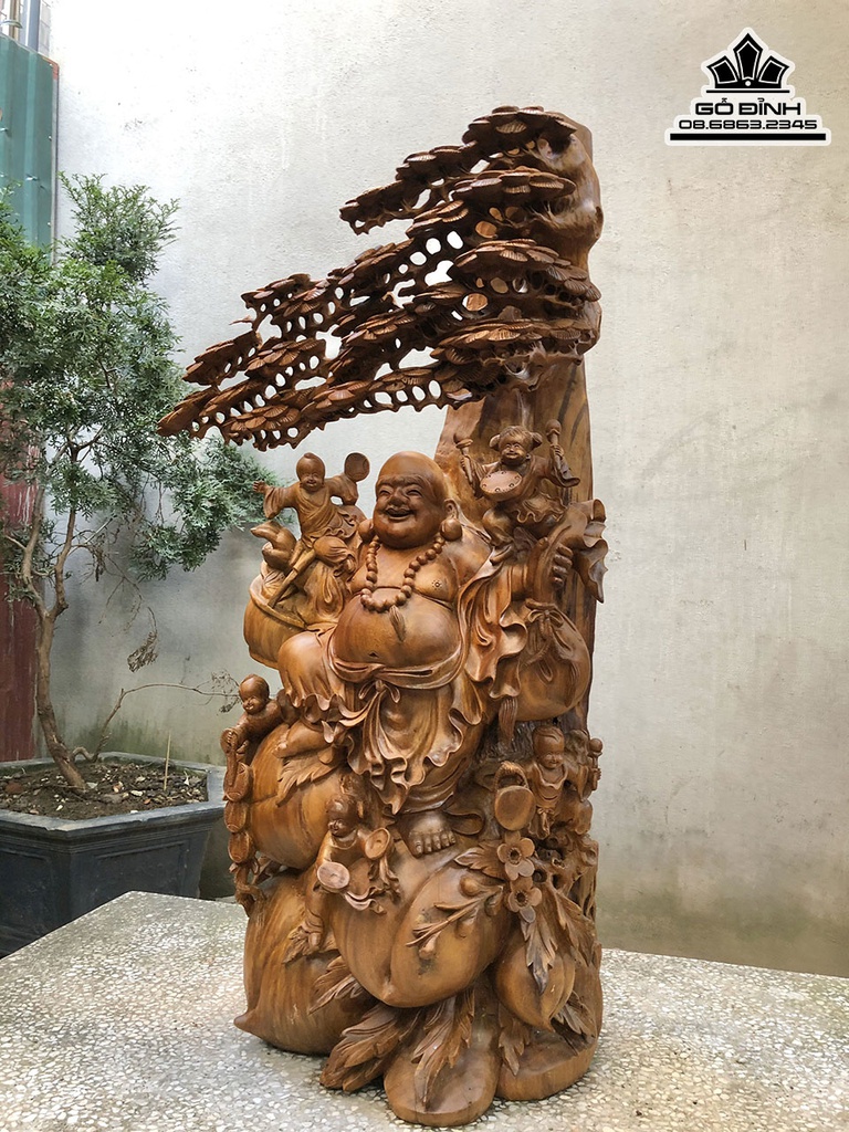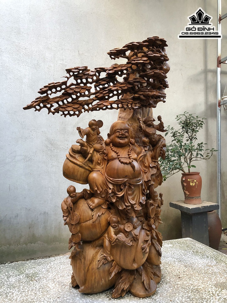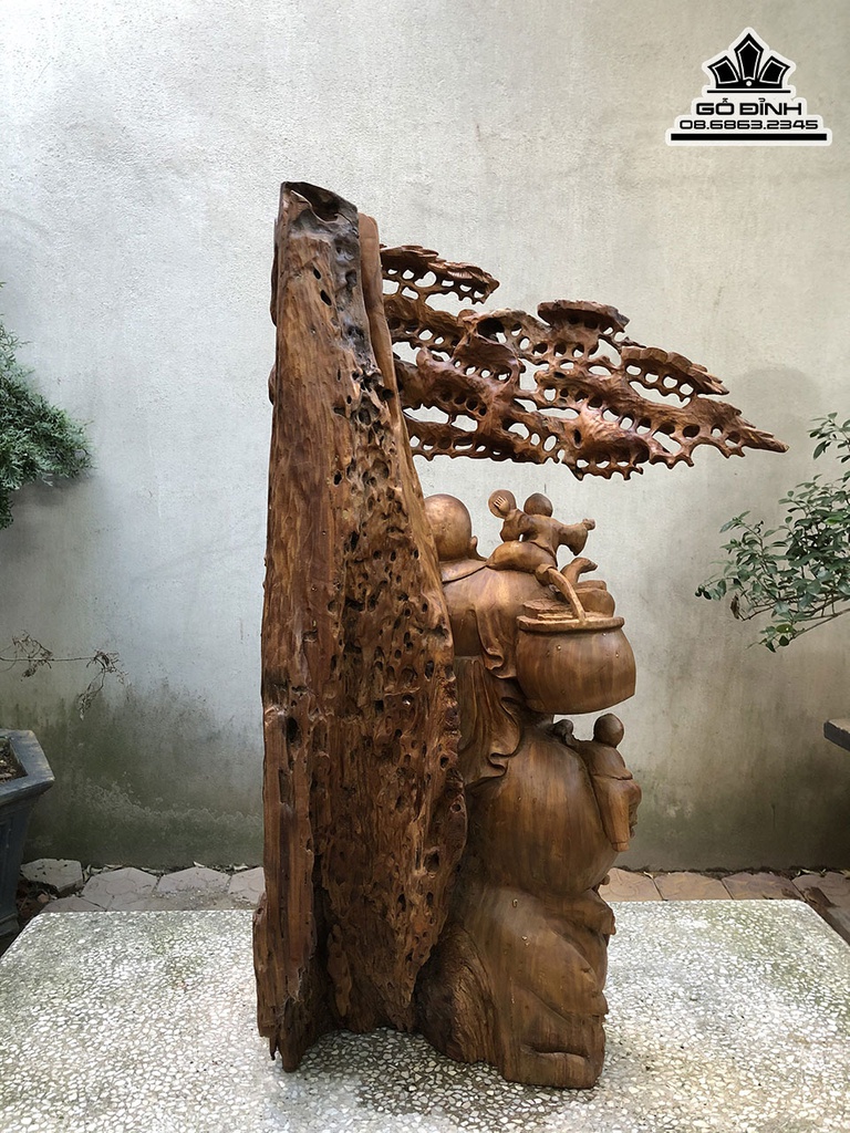 Tượng Phật Di Lặc Đứng Gốc Tùng Gỗ Xá Xị (Gù Hương)