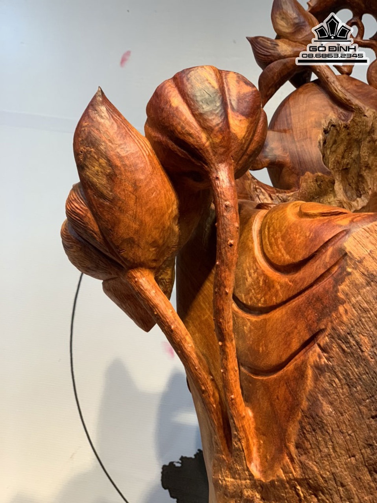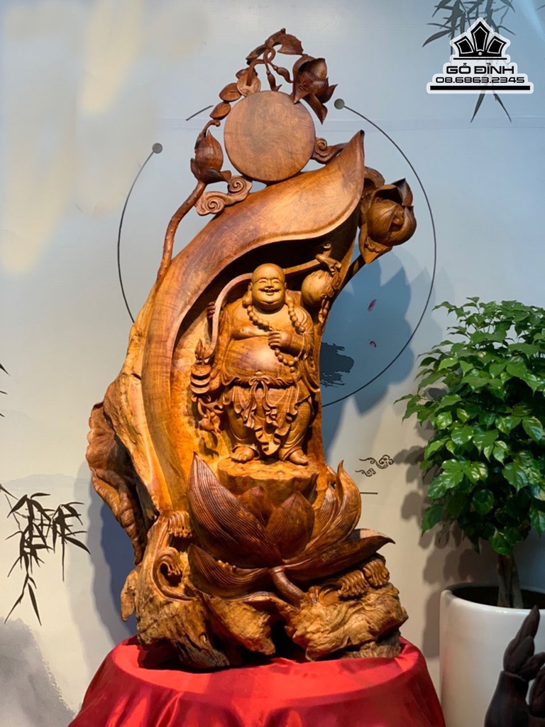 Tượng Phật Di Lặc Đứng Hoa Sen Gỗ Hương Cao 118 Ngang 60 Sâu 50 (cm)