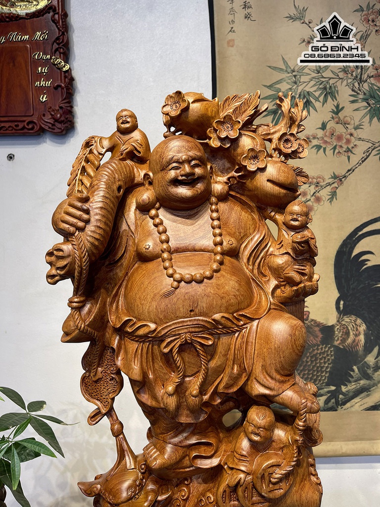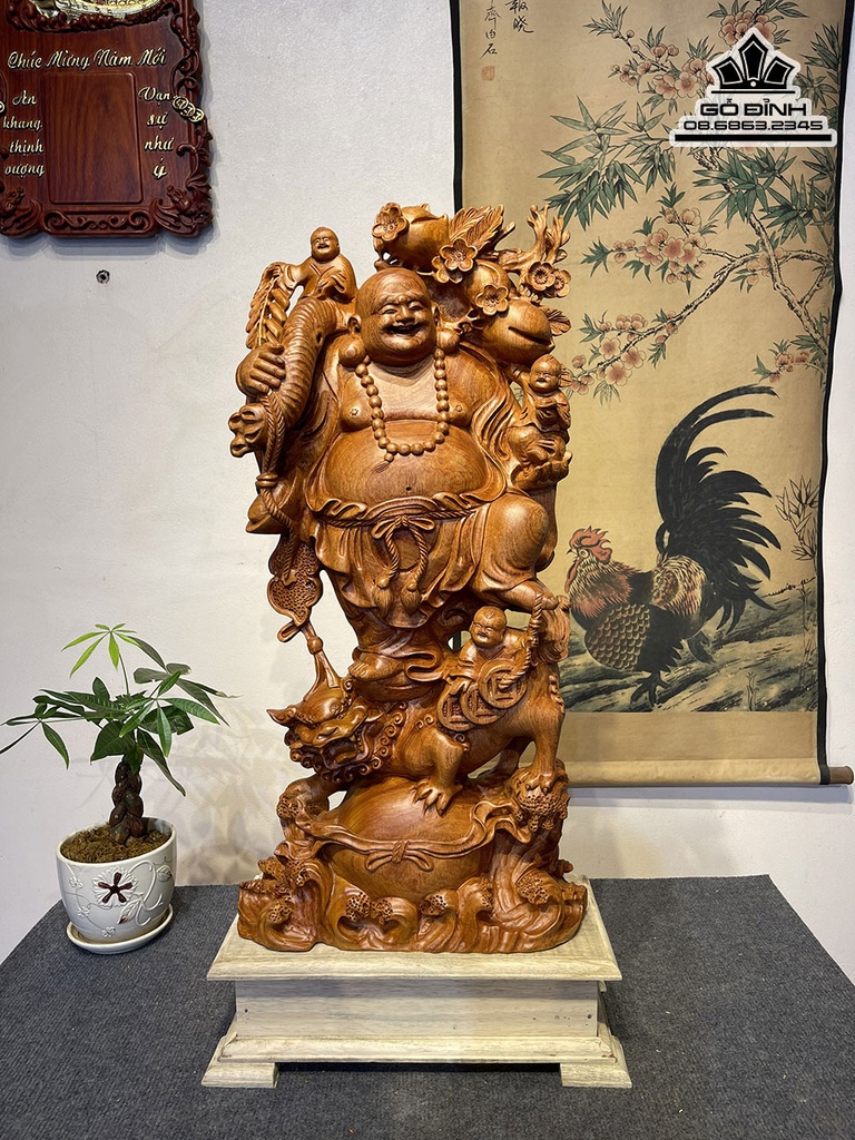 Tượng Phật Di Lặc Đứng Nghê Gỗ Hương Cao 73 Ngang 31 Sâu 14 (cm)