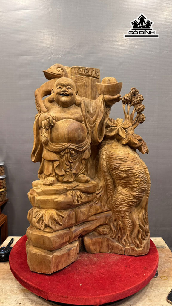 Tượng Phật Di Lặc Đứng Nhân Sâm Gỗ Ngọc Am Cao 74 Ngang 46 Sâu 27 (cm) 34kg