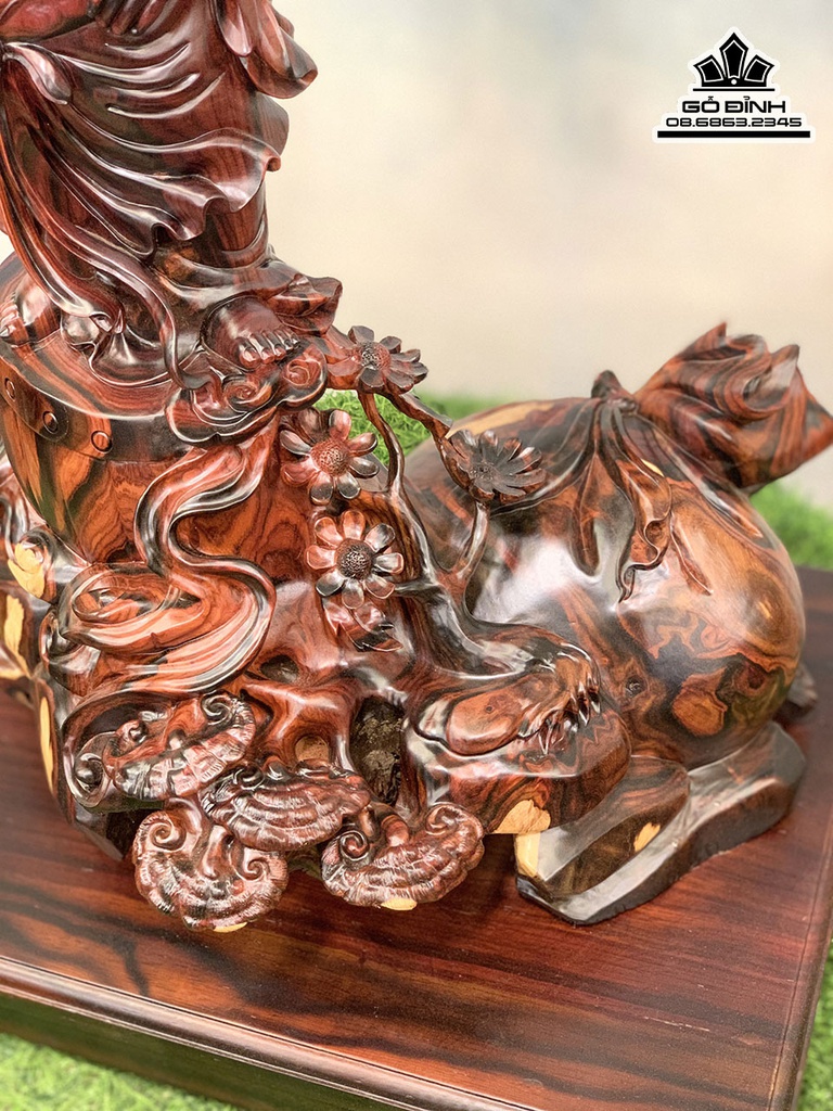 Tượng Phật Di Lặc Đứng Trống Gỗ Trắc Cao 55 Ngang 38 Sâu 32 (cm)