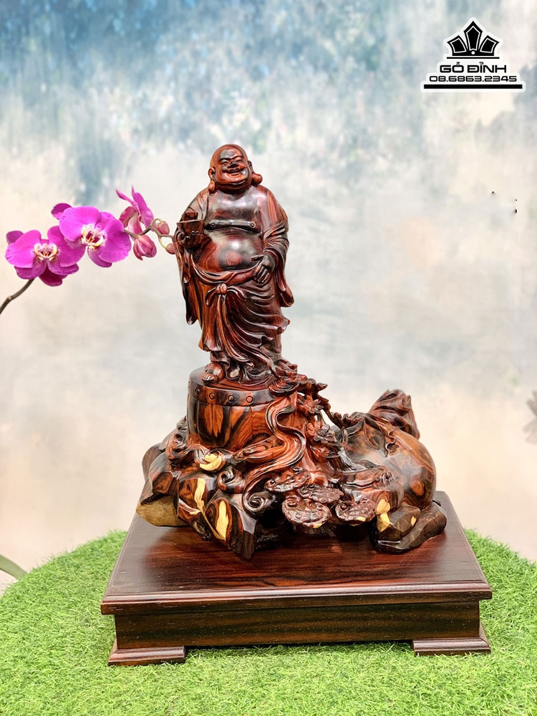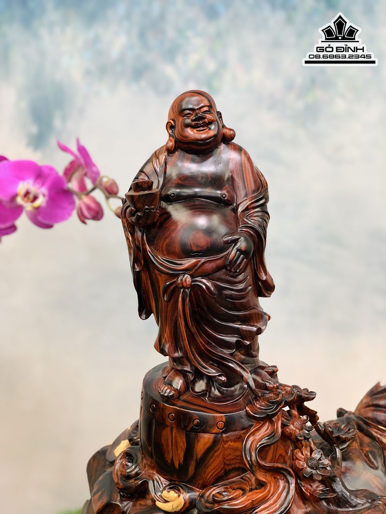Tượng Phật Di Lặc Đứng Trống Gỗ Trắc