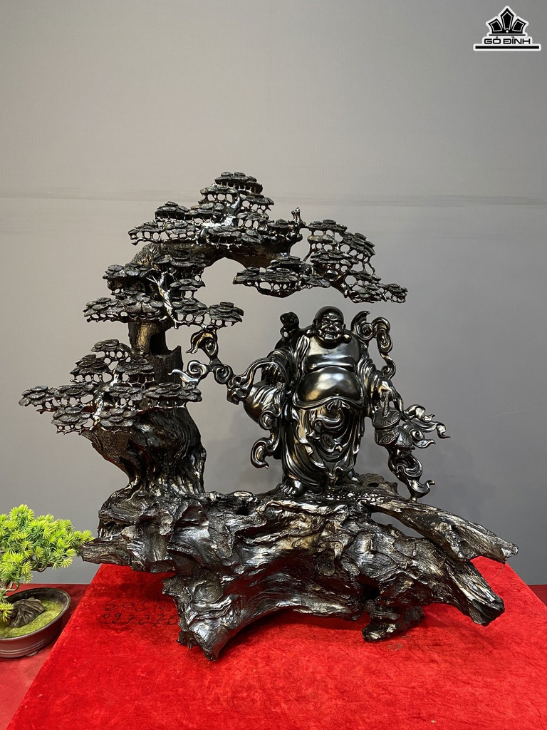 Tượng Phật Di Lặc Đứng Tùng Gỗ Mun Sừng Cao 66 Ngang 60 Sâu 23 (cm)