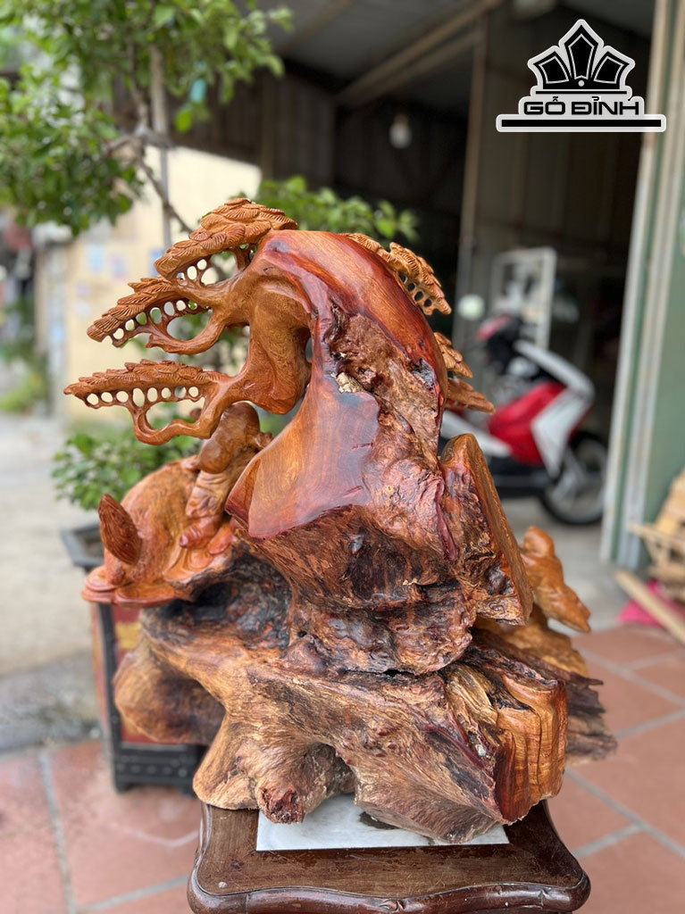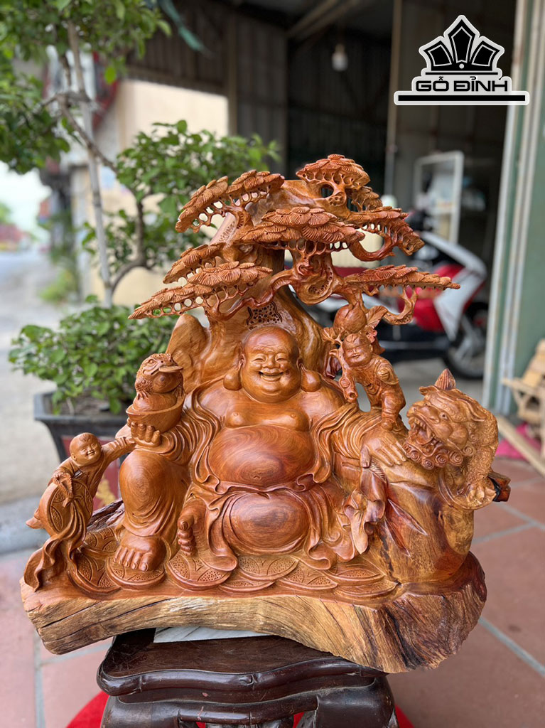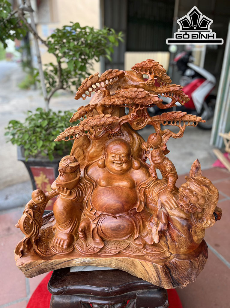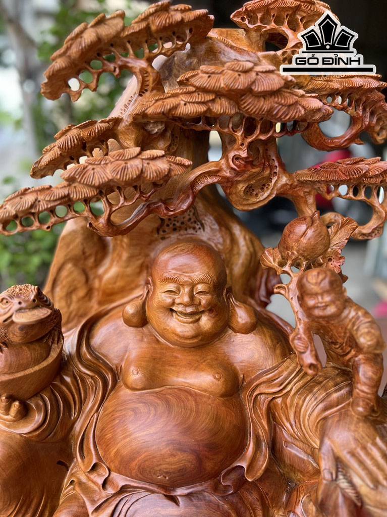 Tượng Phật Di Lặc Dưới Gốc Tùng Gỗ Hương Cao 63 Ngang 63 Sâu 40 (cm)