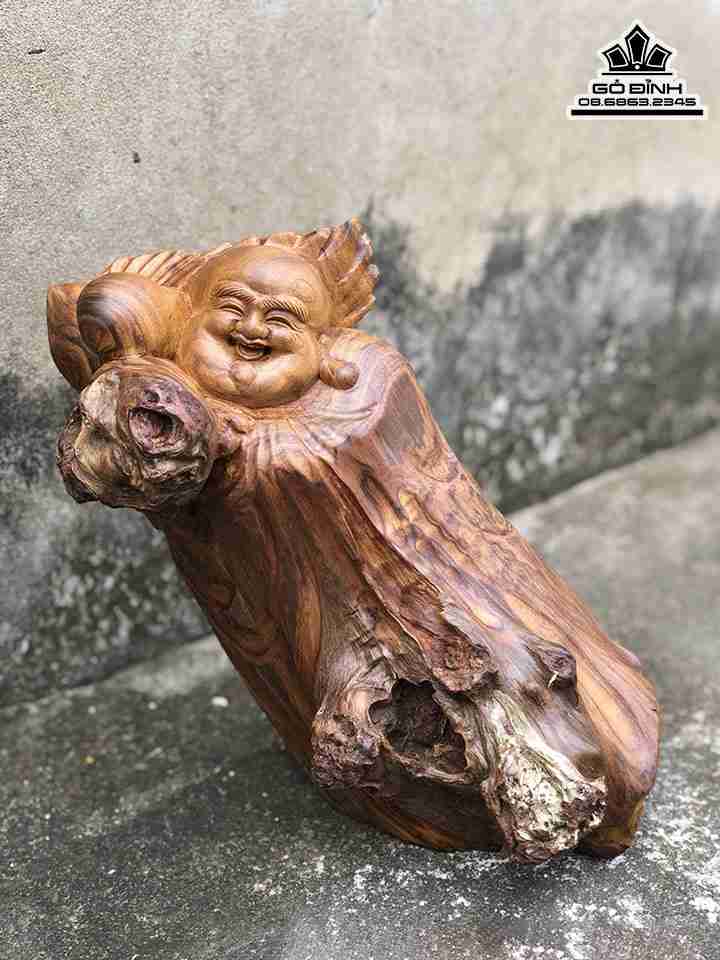 Tượng Phật Di Lặc Gỗ Bách Xanh Cao 26 Ngang 16 Sâu 15 (cm)