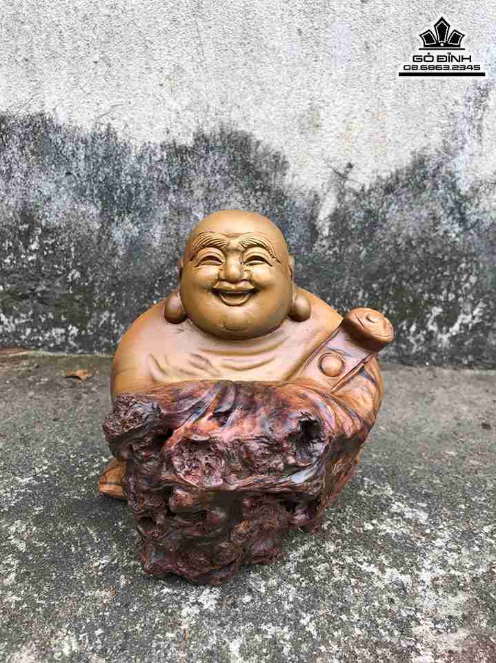 Tượng Phật Di Lặc Gỗ Bách Xanh Cao 14 Rộng 13 Dày 10 (cm)