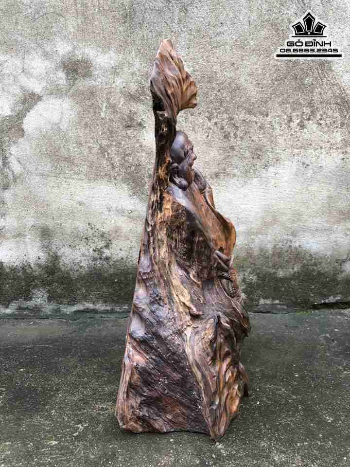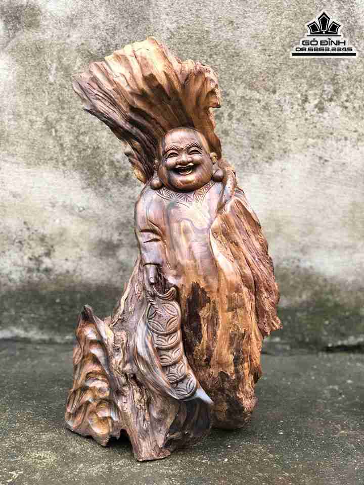 Tượng Phật Di Lặc Gỗ Bách Xanh Cao 46 Ngang 26 Sâu 18 (cm)