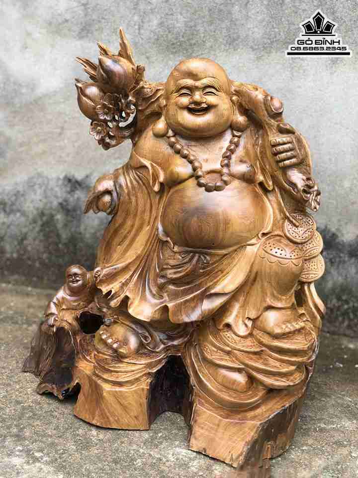 Tượng Phật Di Lặc Gỗ Bách Xanh Cao 48 Ngang 39 Sâu 26 (cm)