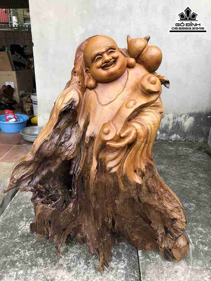 Tượng Phật Di Lặc Gỗ Bách Xanh Cao 73 Ngang 59 Sâu 22 (cm)