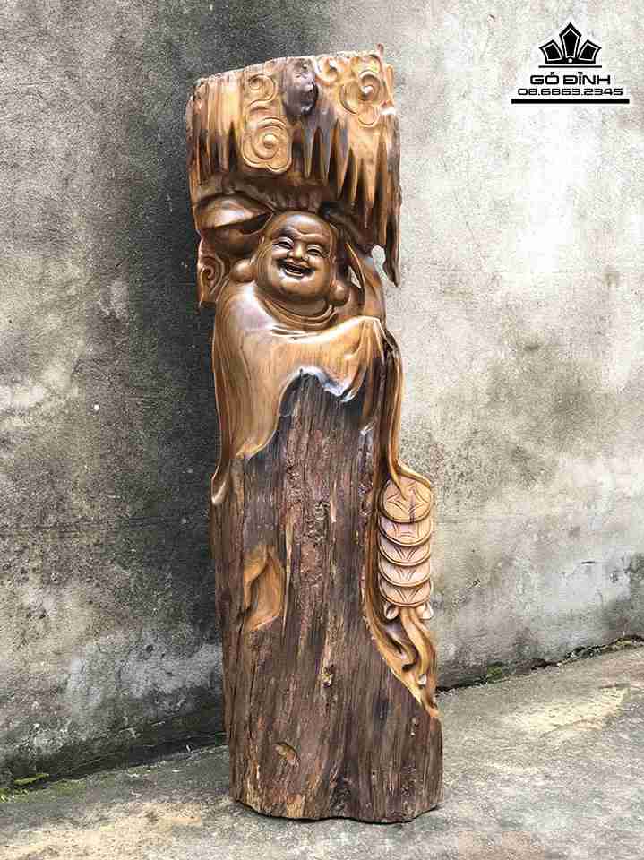 Tượng Phật Di Lặc Gỗ Bách Xanh Cao 92 Ngang 26 Sâu 13 (cm)