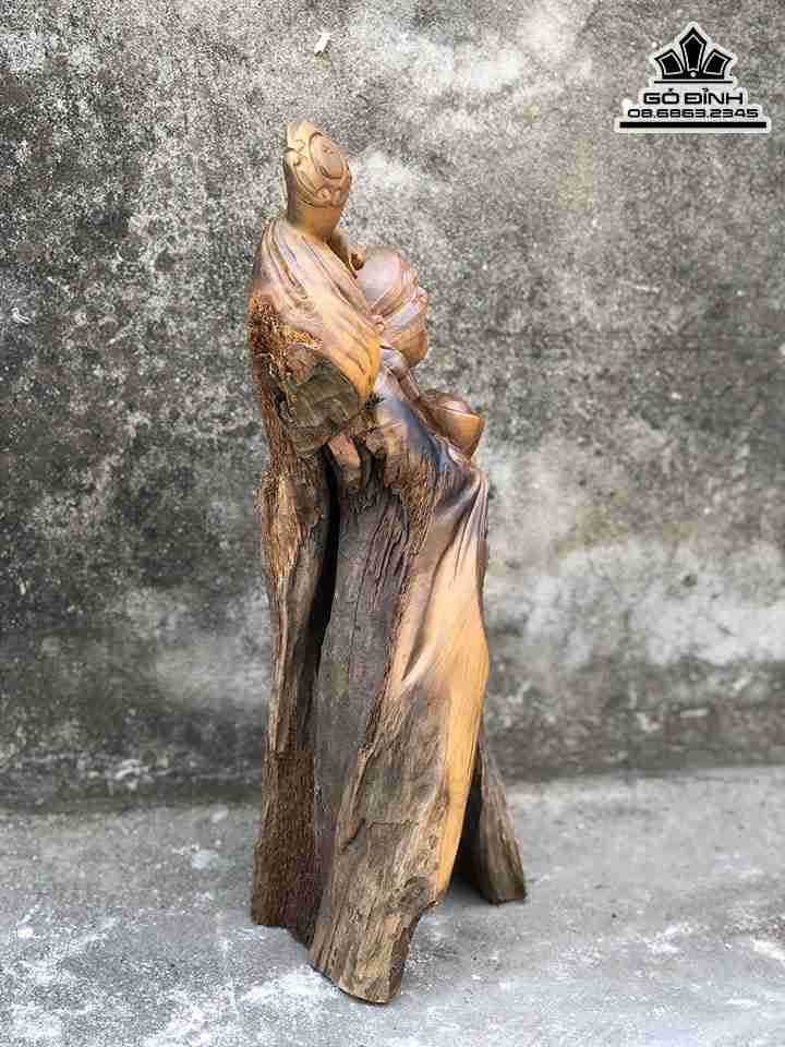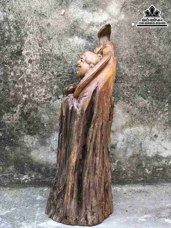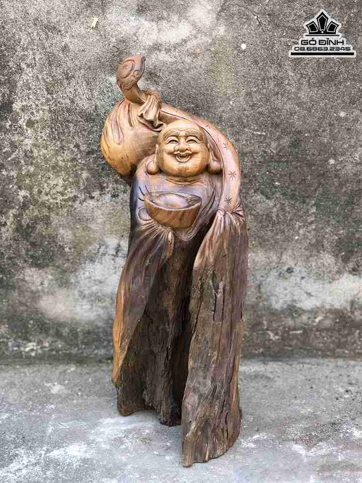 Tượng Phật Di Lặc Gỗ Bách Xanh Cao 48 Ngang 18 Sâu 18 (cm)