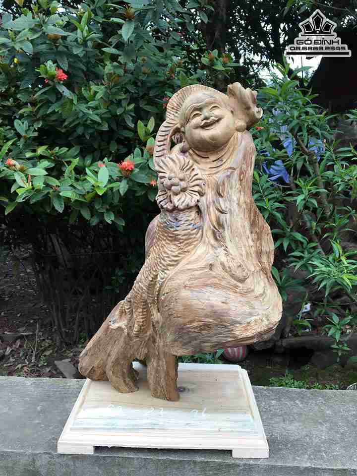 Tượng Phật Di Lặc Gỗ Bách Xanh Cao 62 Ngang 27 Sâu 26 (cm)