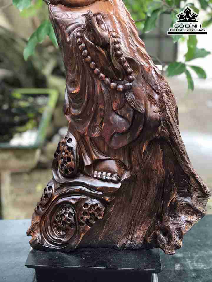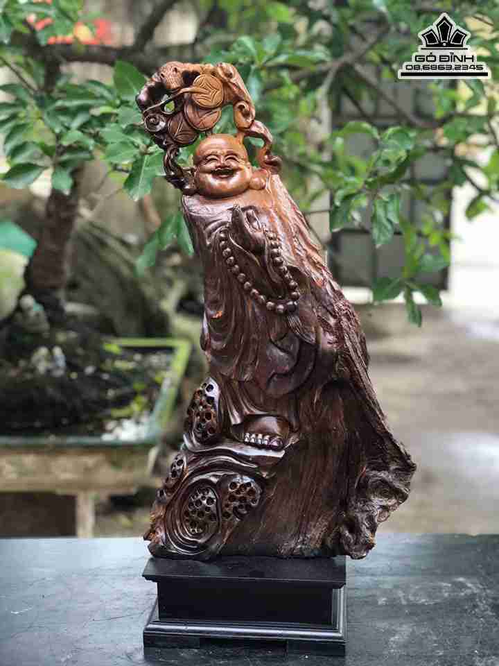 Tượng Phật Di Lặc Gỗ Bách Xanh Cao 60 Rộng 35 Dày 17 (cm)