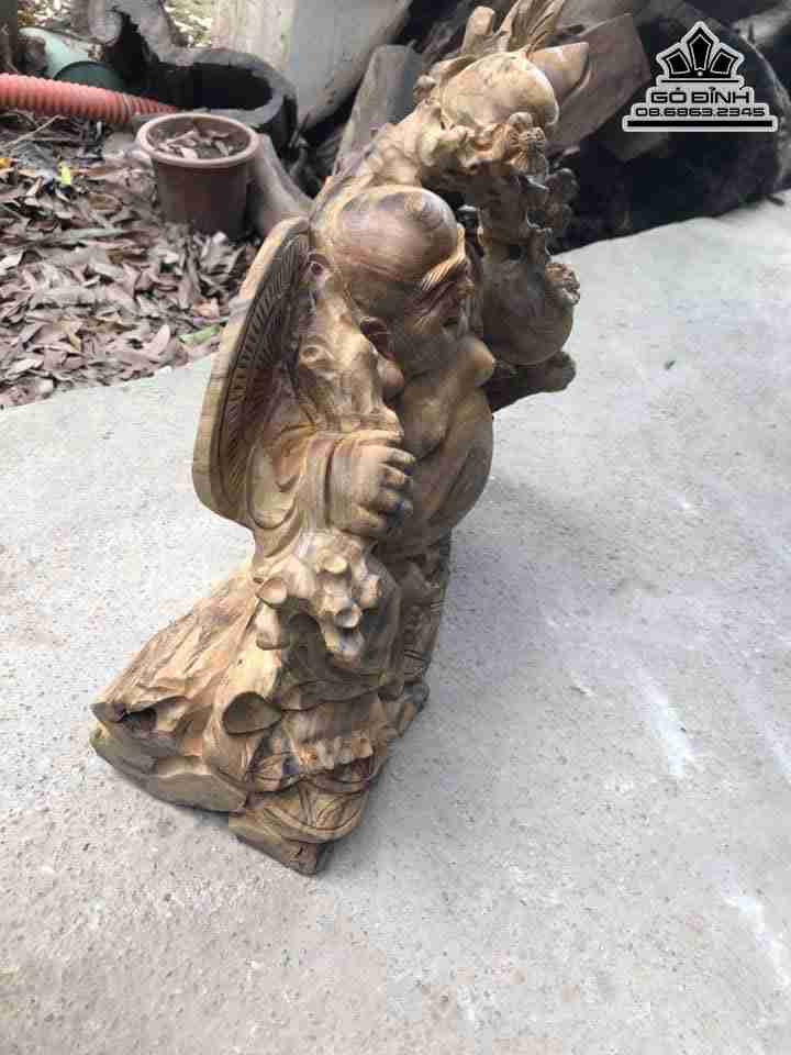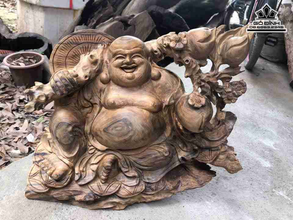 Tượng Phật Di Lặc Gỗ Bách Xanh Cao 43 Rộng 45 Dày 17 (cm)