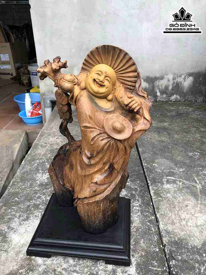 Tượng Phật Di Lặc Gỗ Bách Xanh Cao 52 Ngang 30 Sâu 19 (cm)