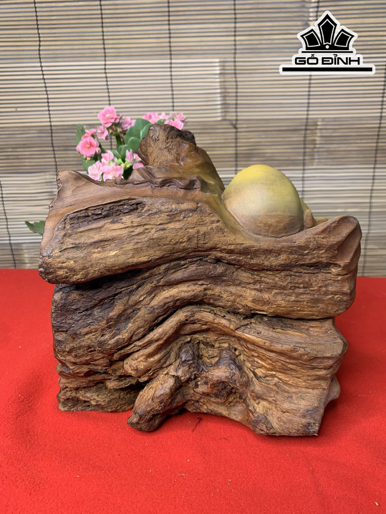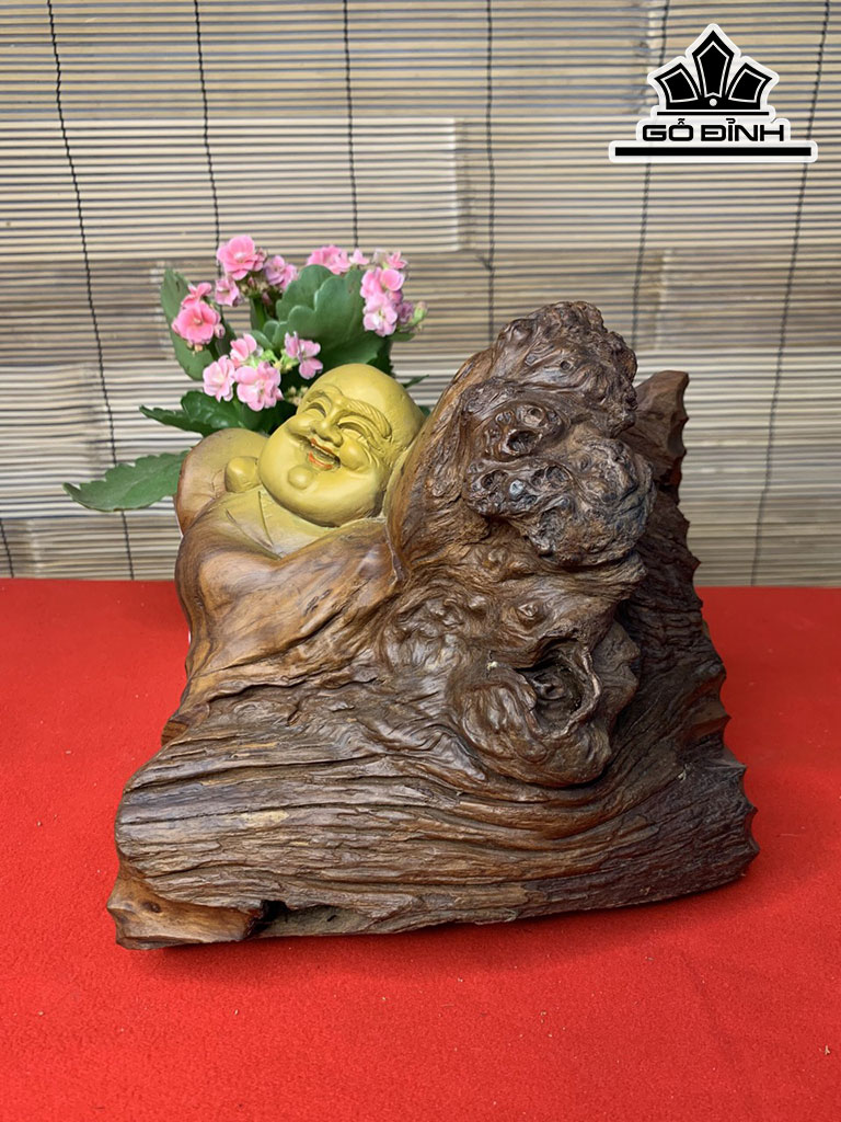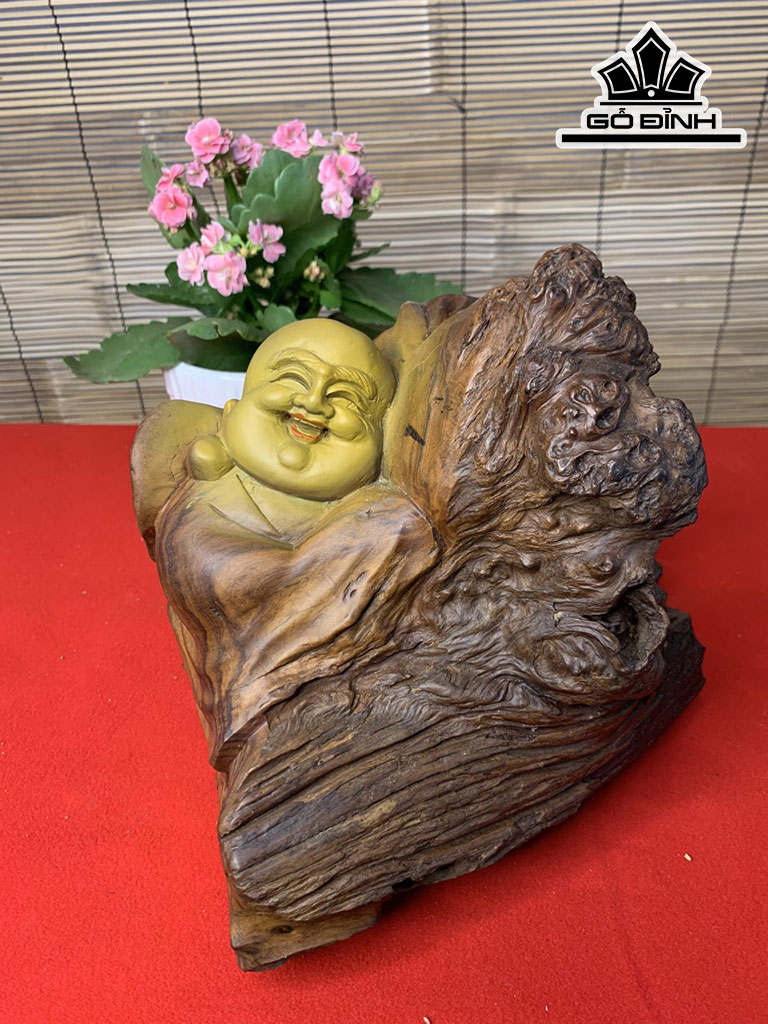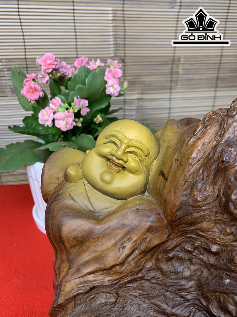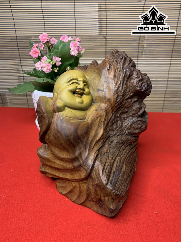 Tượng Phật Di Lặc Gỗ Bách Xanh Cao 20 Ngang 21 Sâu 15 (cm)