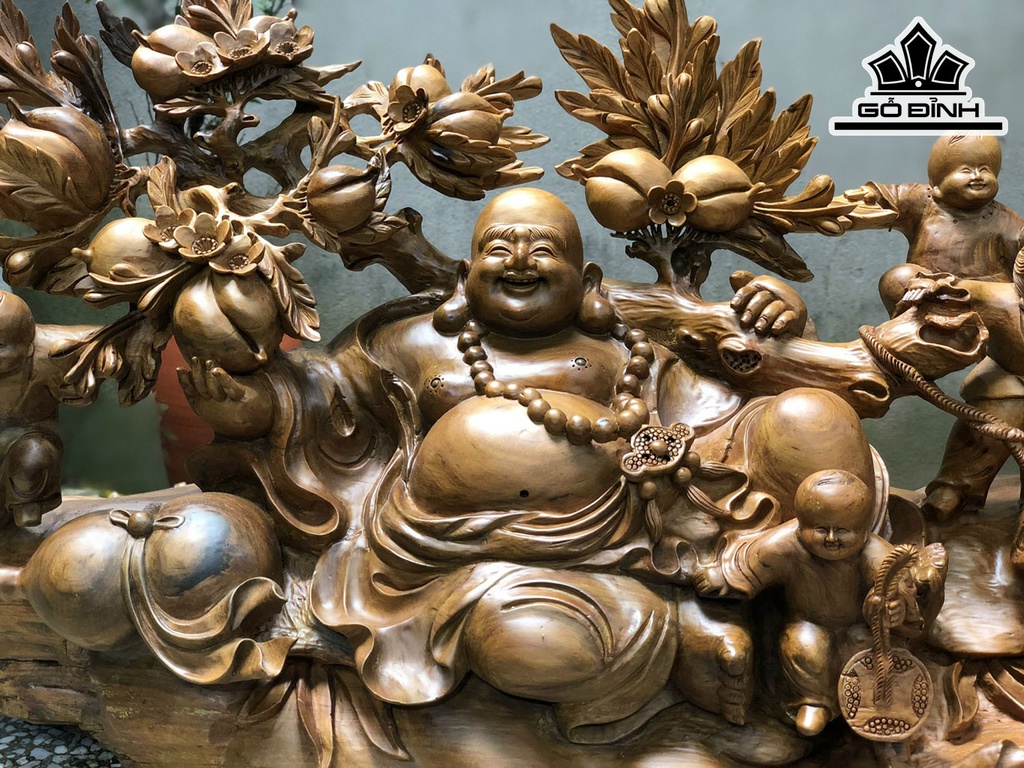 Tượng Phật Di Lặc Gỗ Bách Xanh Cao 38 Ngang 78 Sâu 24 (cm)