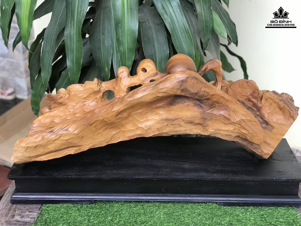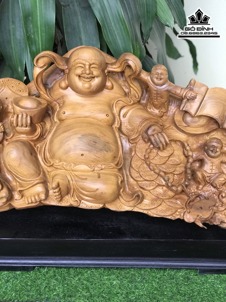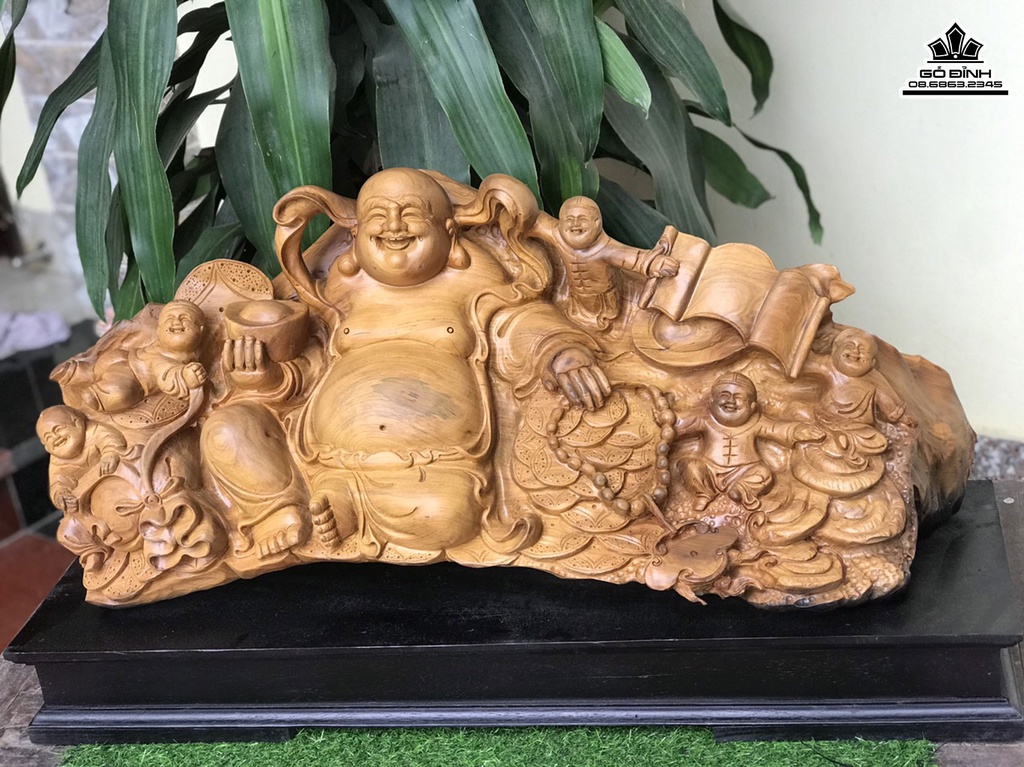 Tượng Phật Di Lặc Gõ Bách Xanh Cao 45 Ngang 80 Sâu 28 (cm)
