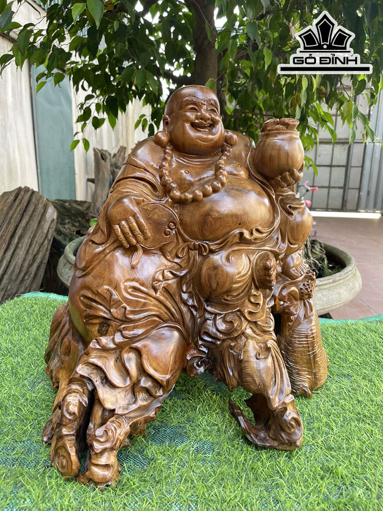 Tượng Phật Di Lặc Gỗ Bách Xanh Cao 46 Ngang 48 Sâu 38 (cm)