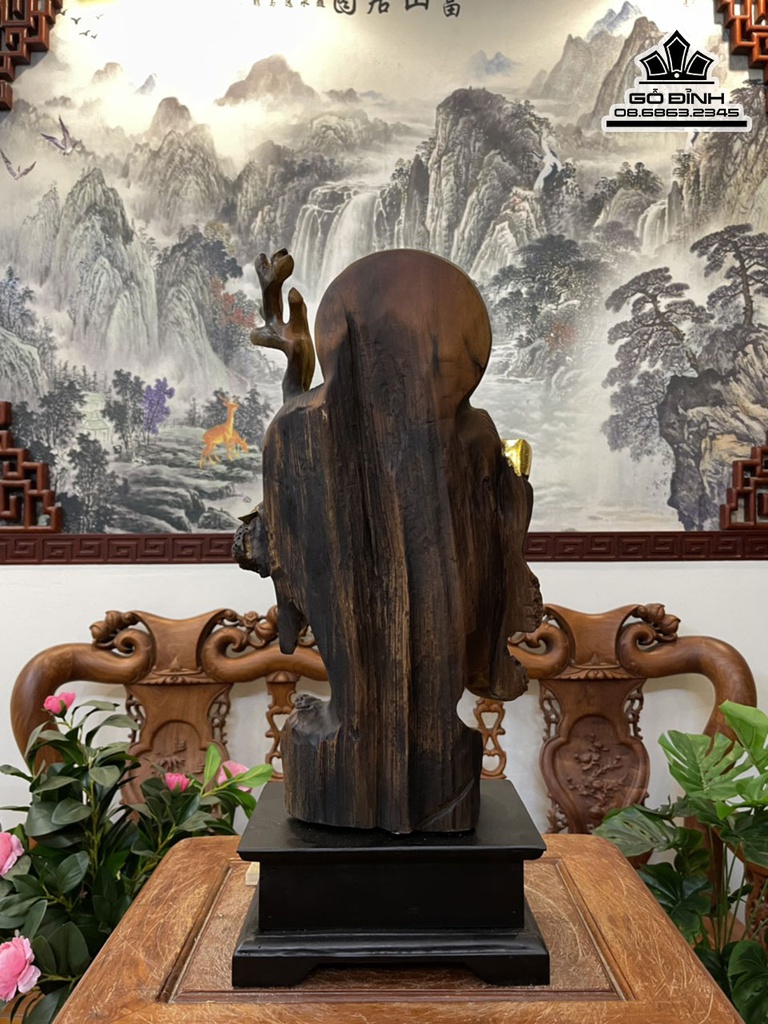 Tượng Phật Di Lặc Gỗ Bách Xanh Cao 47 Ngang 24 Sâu 12 (cm)