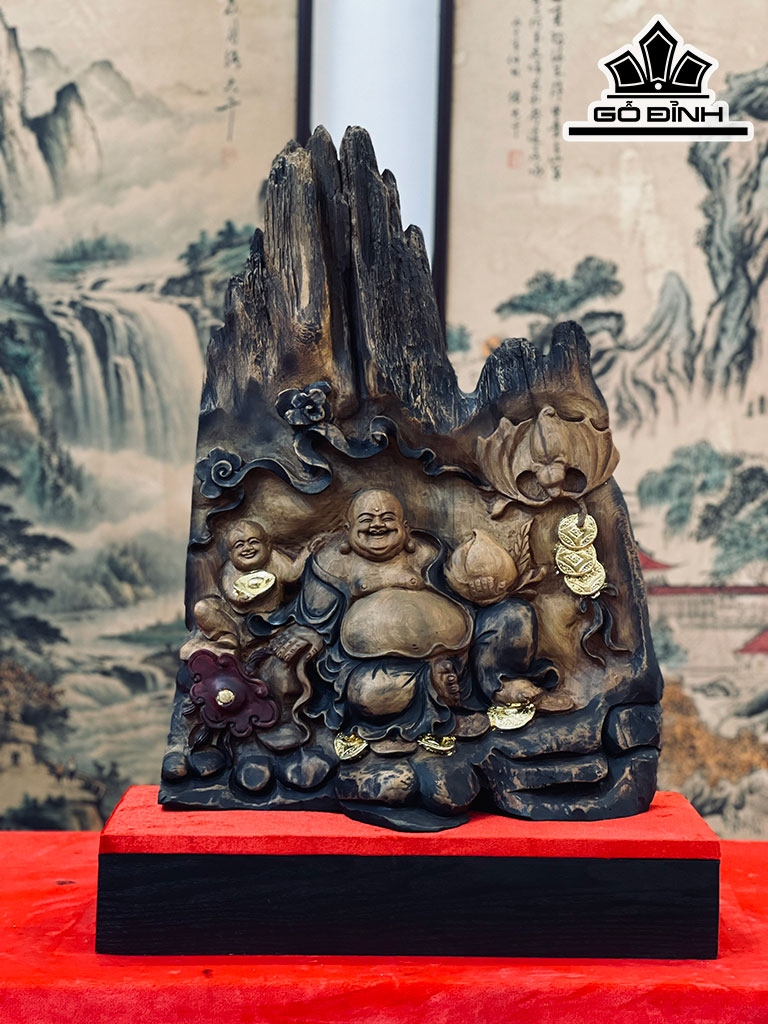 Tượng Phật Di Lặc Gỗ Bách Xanh Cao 54 Ngang 40 Sâu 16 (cm)