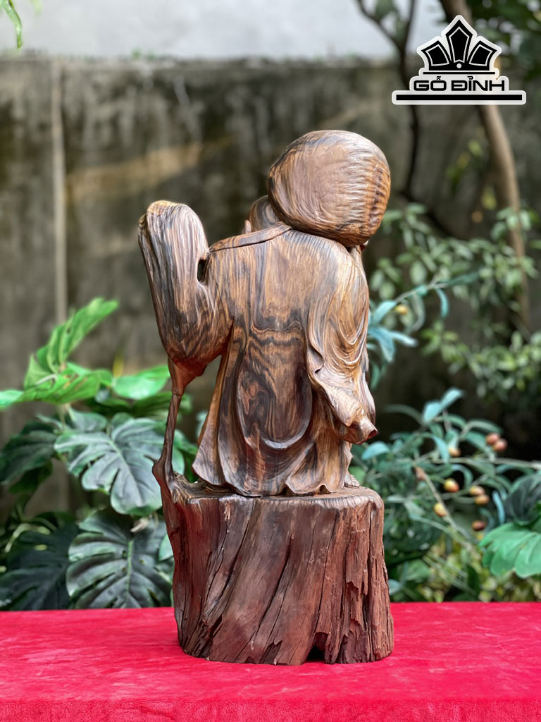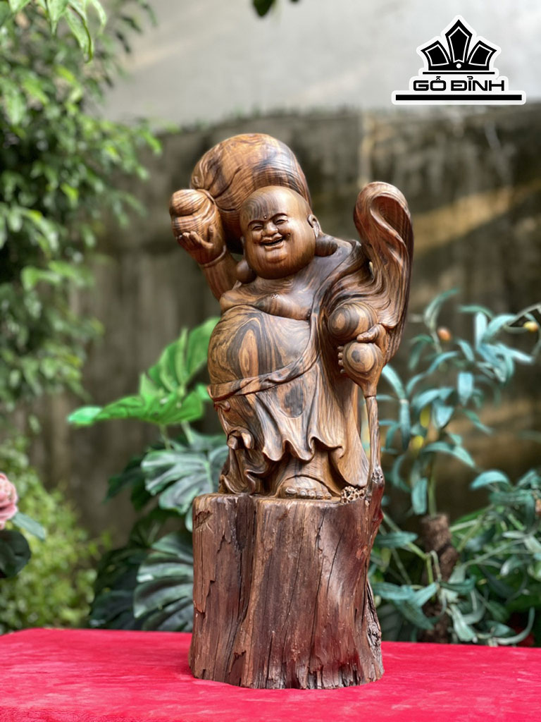 Tượng Phật Di Lặc Gỗ Bách Xanh Cao 55 Ngang 25 Sâu 22 (cm)