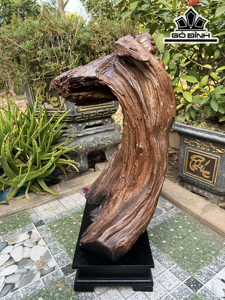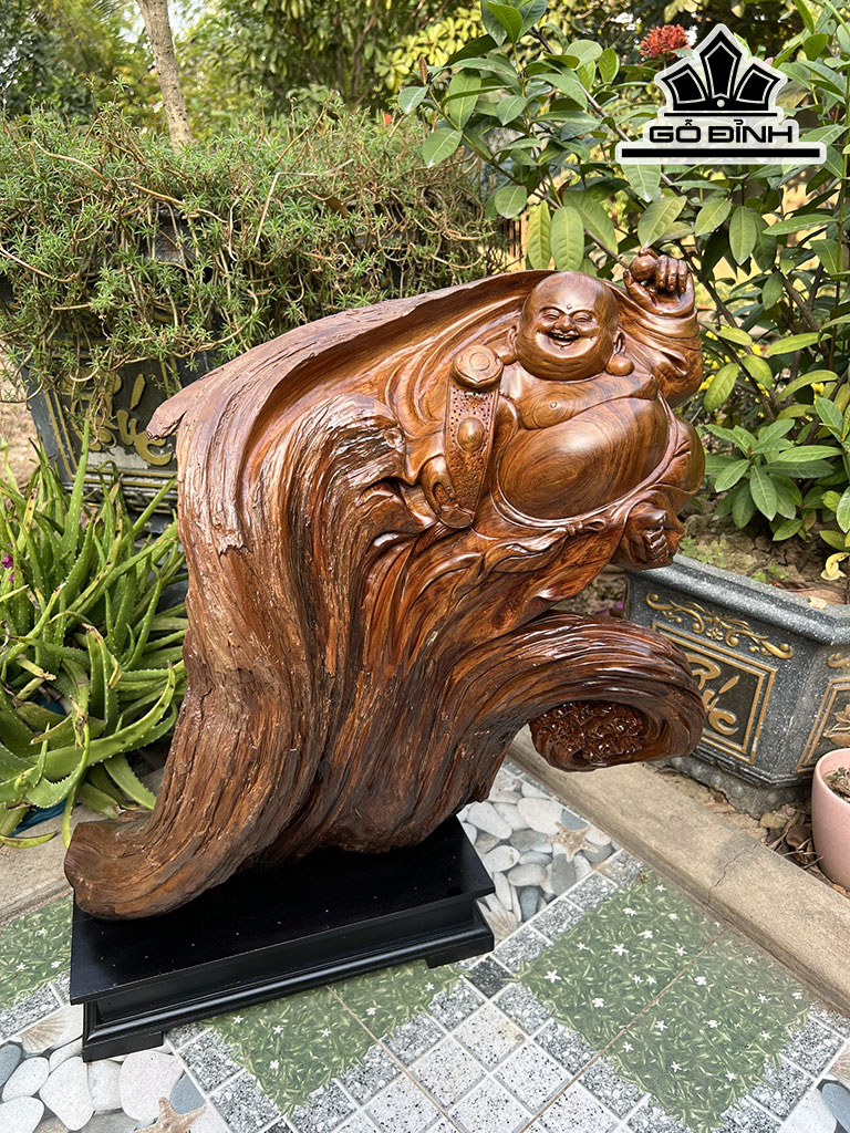 Tượng Phật Di Lặc Gỗ Bách Xanh Cao 55 Ngang 40 Sâu 35 (cm)