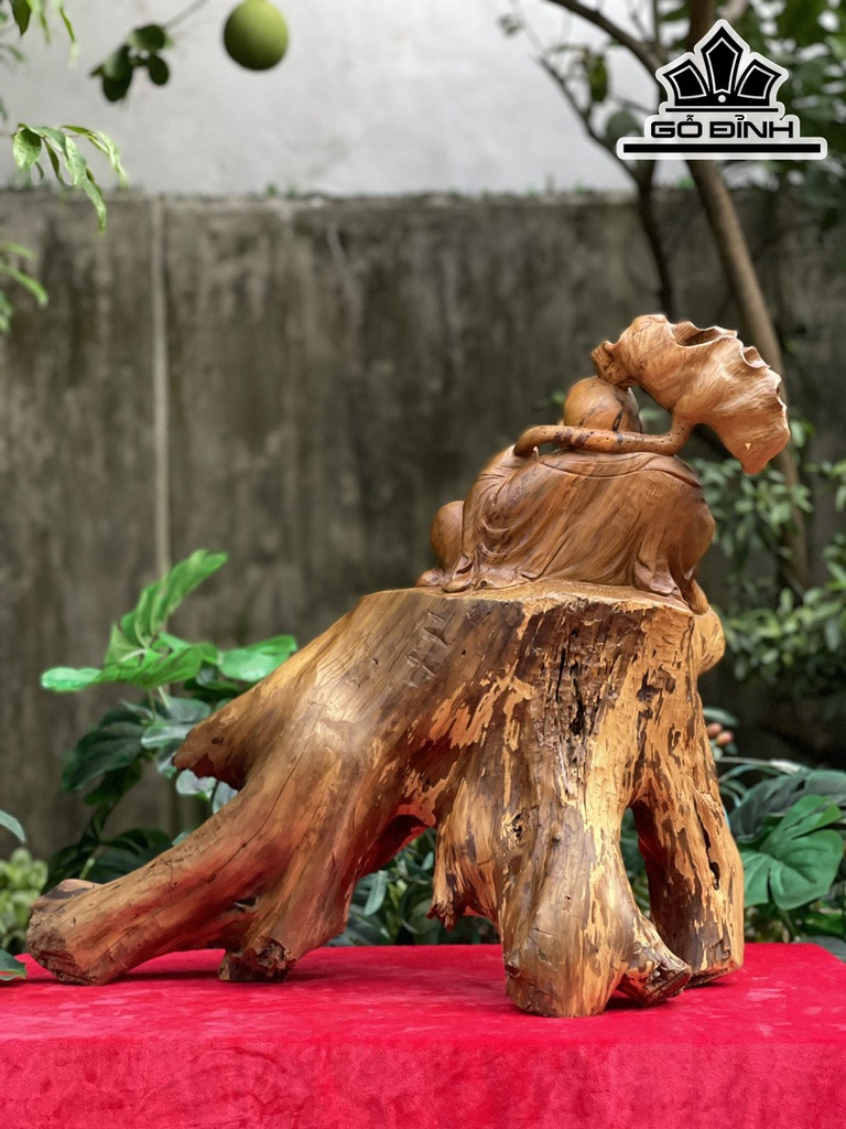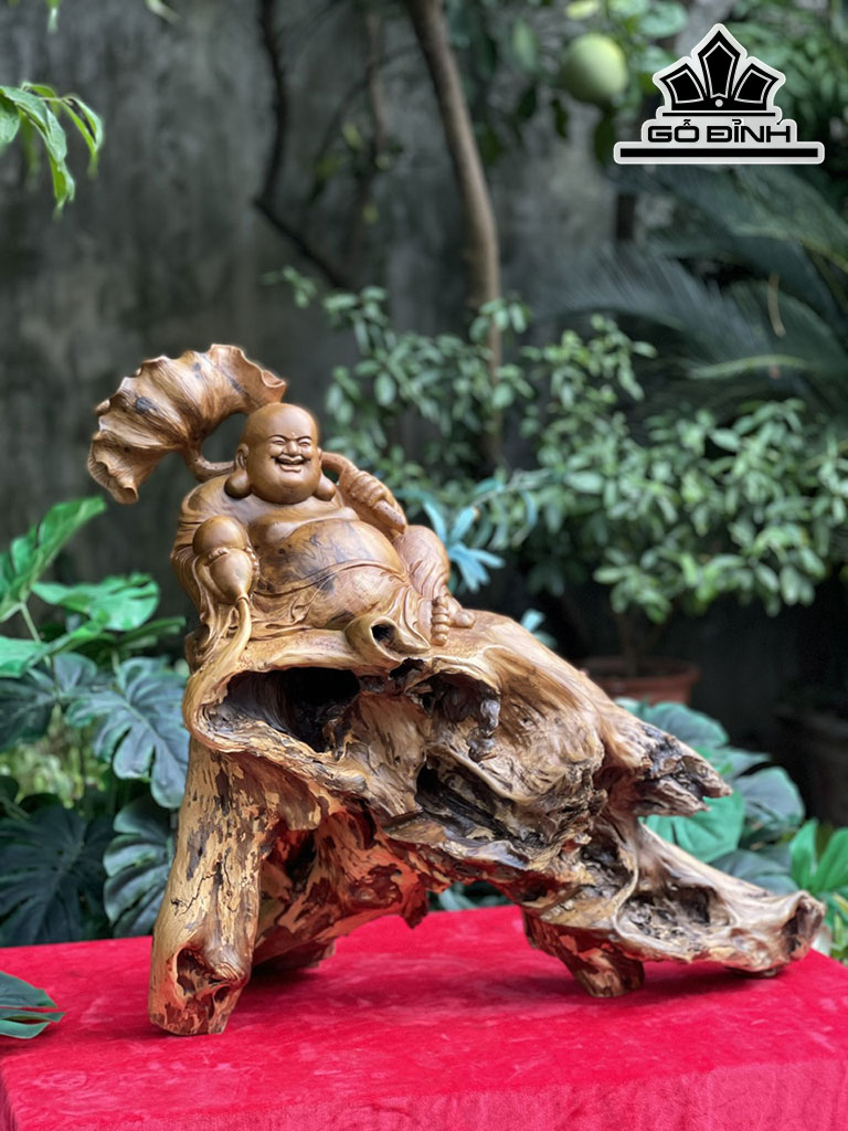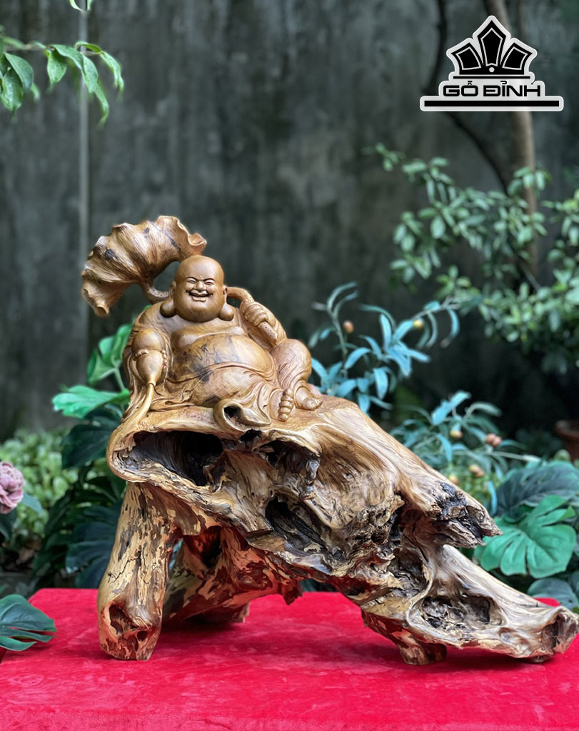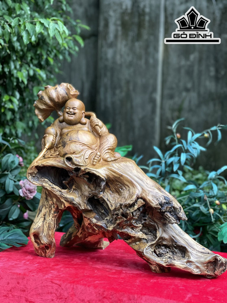 Tượng Phật Di Lặc Gỗ Bách Xanh Cao 55 Ngang 60 Sâu 28 (cm)