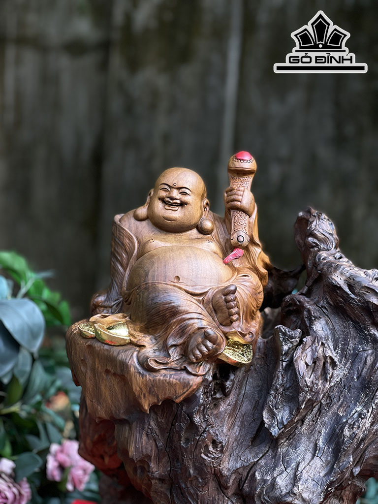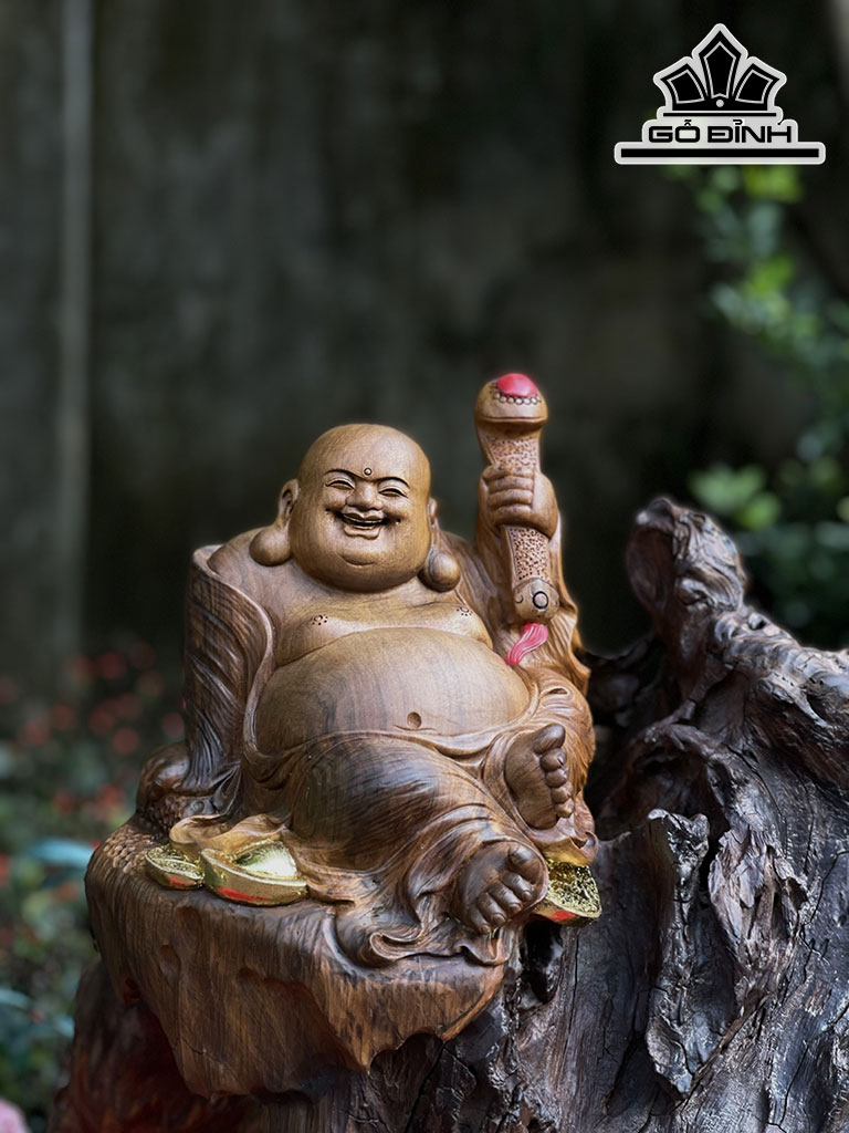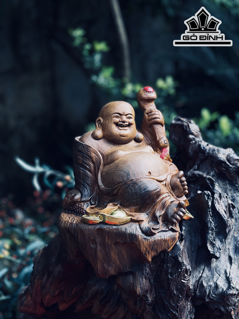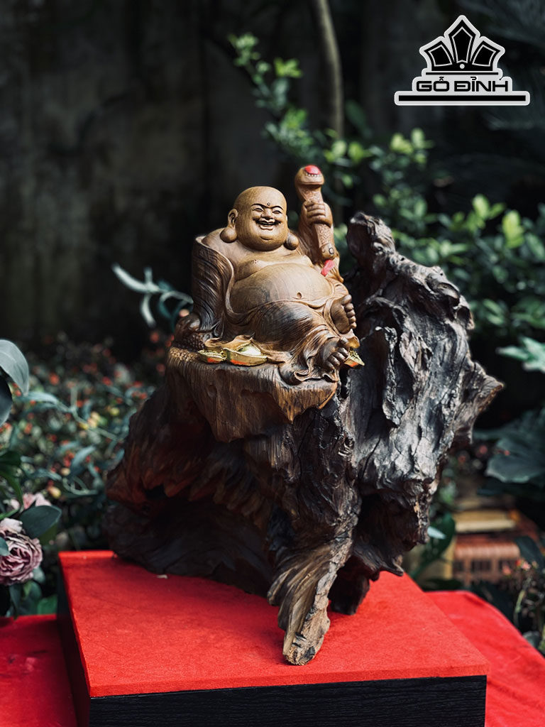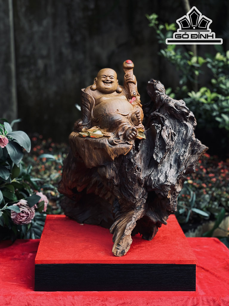Tượng Phật Di Lặc Gỗ Bách Xanh Cao 56 Ngang 43 Sâu 30 (cm)