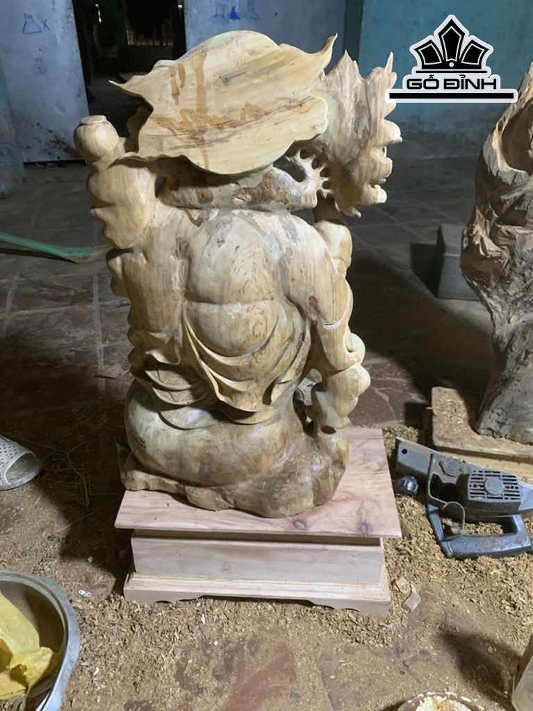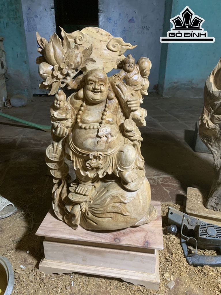 Tượng Phật Di Lặc Gỗ Bách Xanh Cao 59 Ngang 39 Sâu 22 (cm)