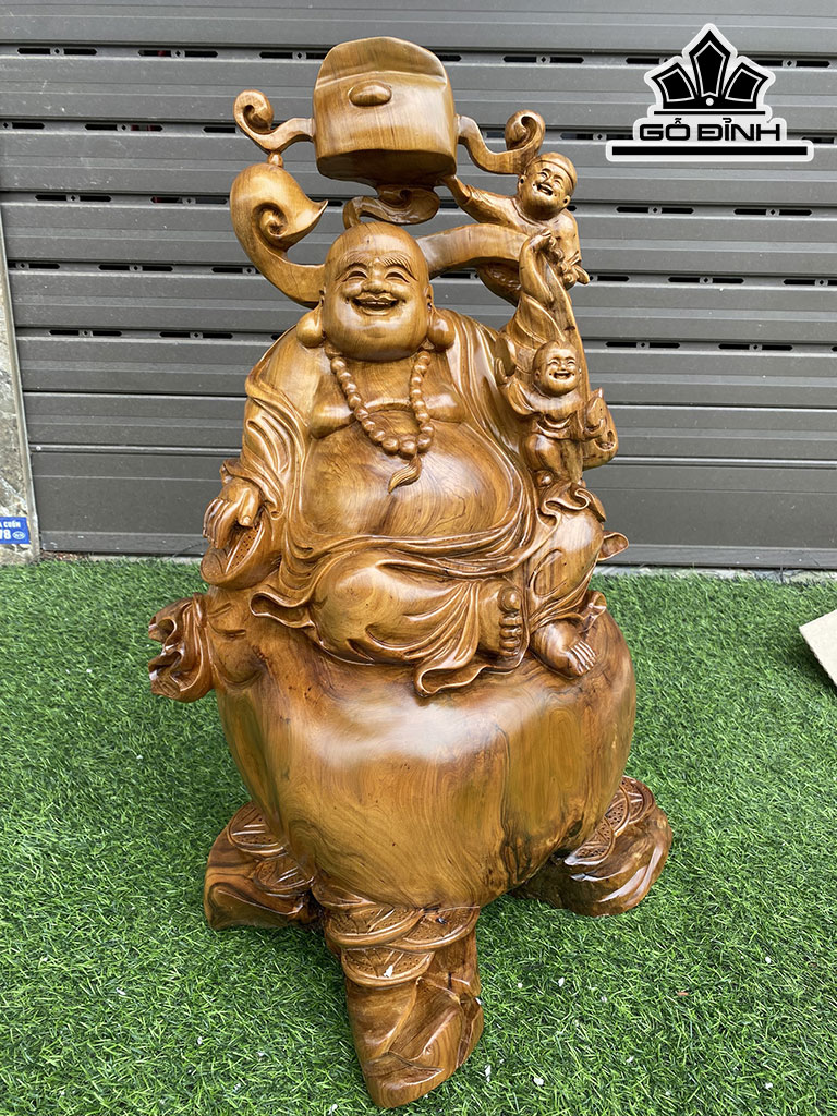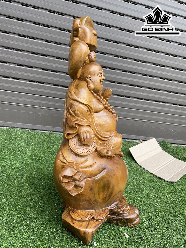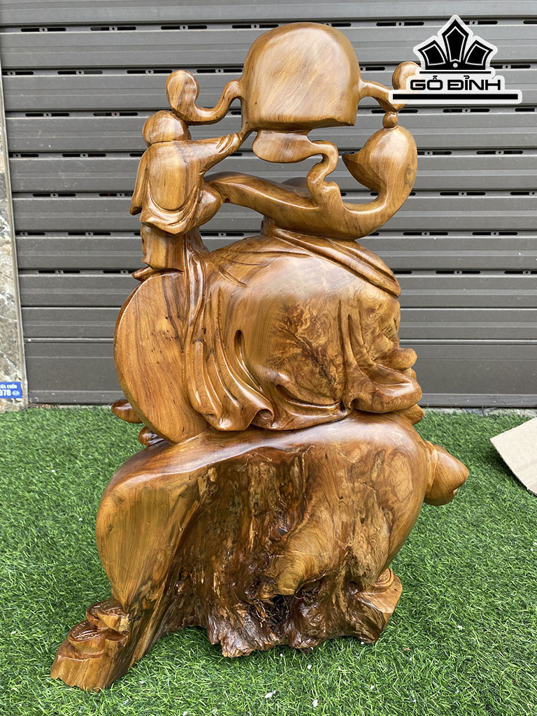 Tượng Phật Di Lặc Gỗ Bách Xanh Cao 62 Ngang 42 Sâu 27 (cm)