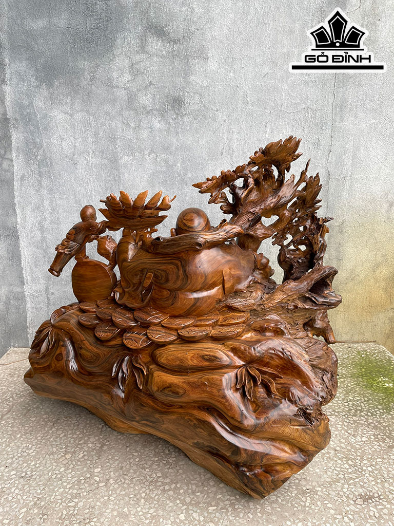 Tượng Phật Di Lặc Gỗ Bách Xanh Cao 62 Ngang 73 Sâu 45 (cm)