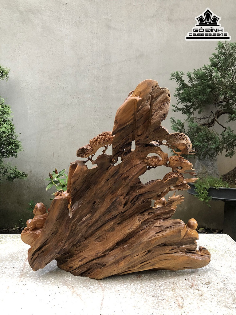Tượng Phật Di Lặc Gỗ Bách Xanh Cao 68 Ngang 70 Sâu 30 (cm)