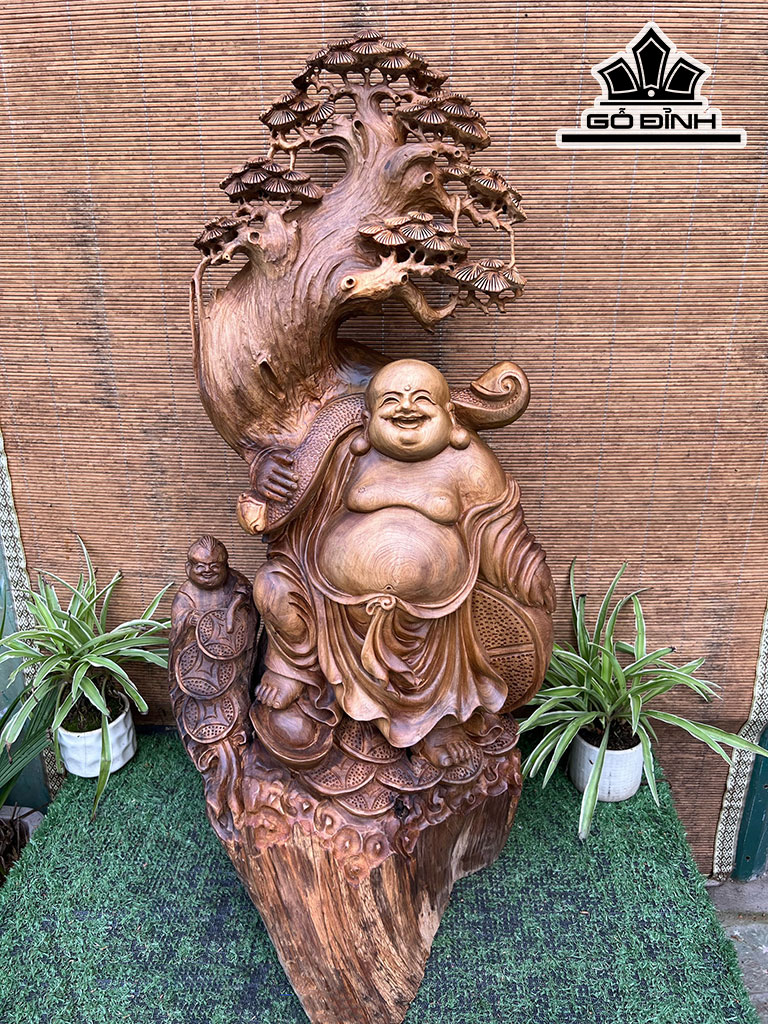 Tượng Phật Di Lặc Gỗ Bách Xanh Cao 74 Ngang 35 Sâu 32 (cm)