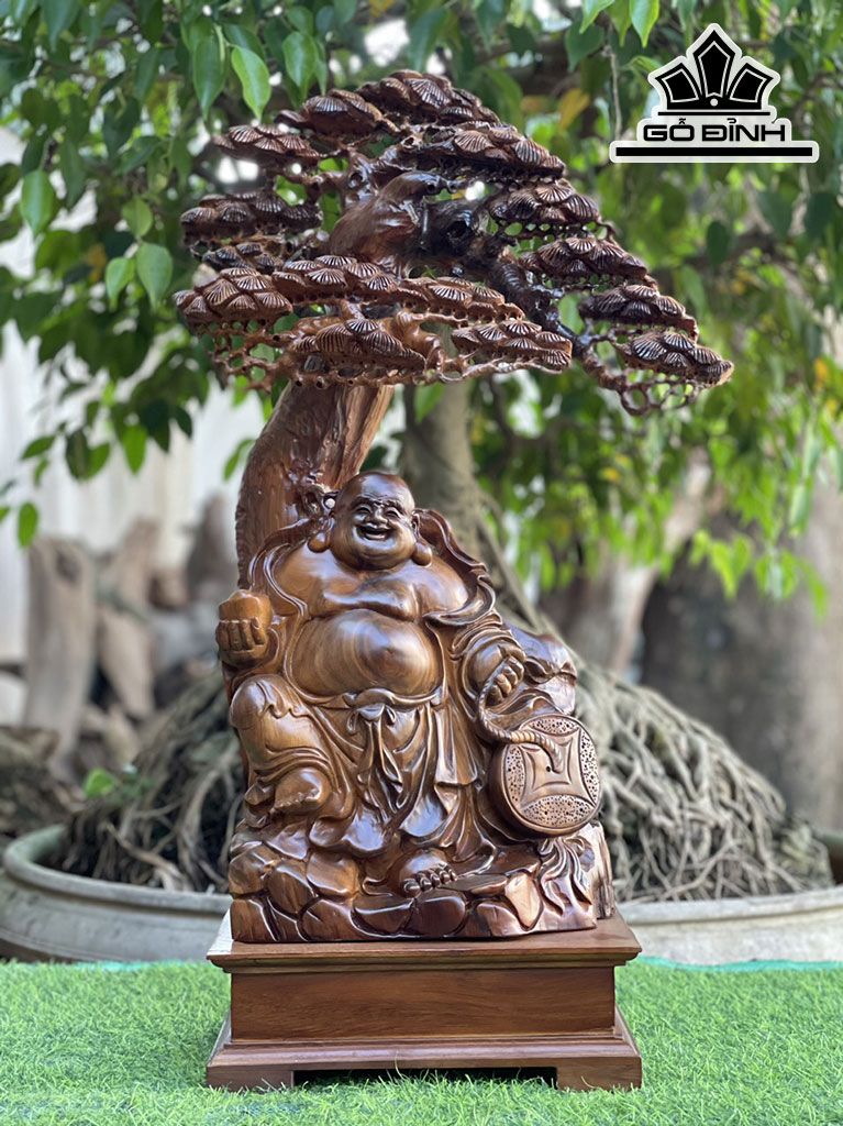 Tượng Phật Di Lặc Gỗ Bách Xanh Cao 76 Ngang 45 Sâu 18 (cm)