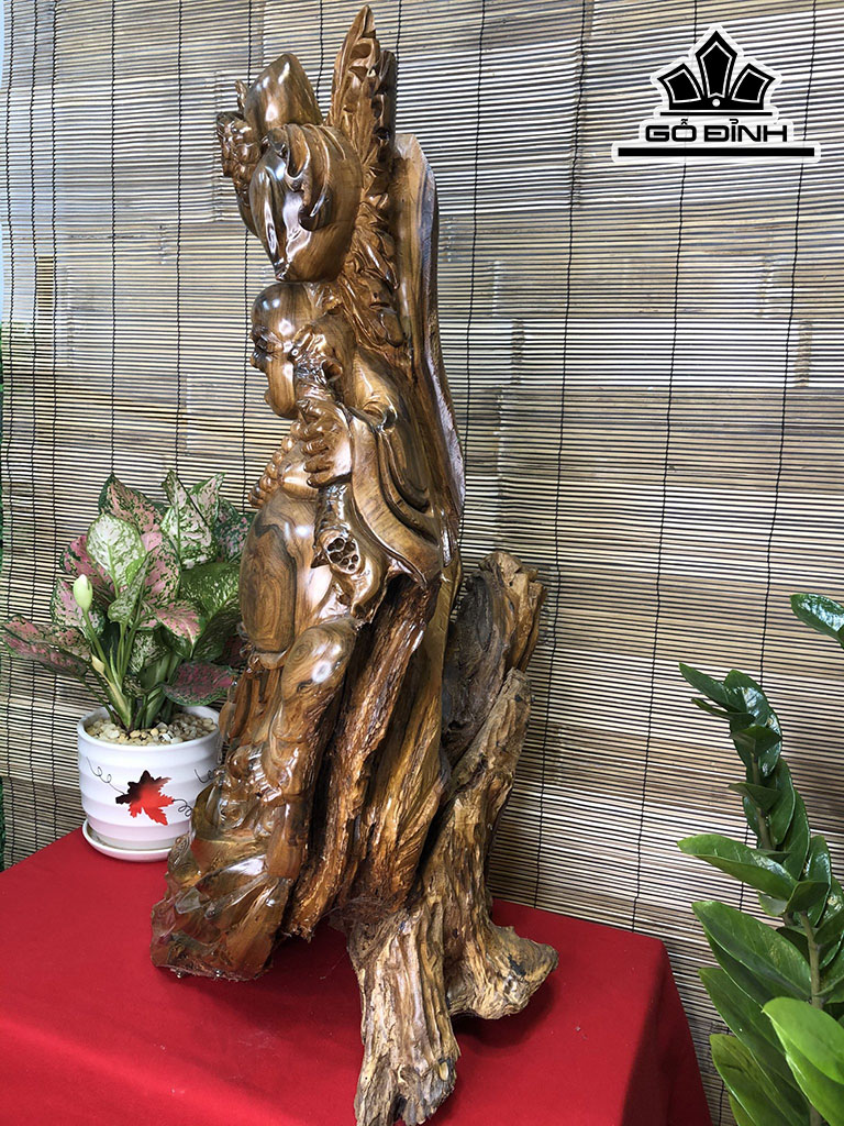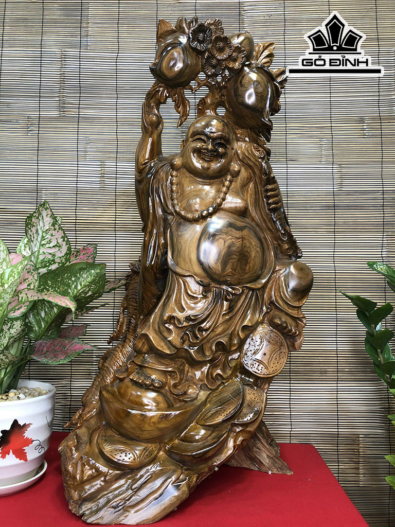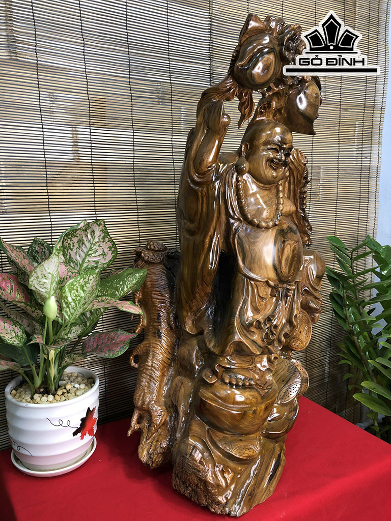 Tượng Phật Di Lặc Gỗ Bách Xanh Cao 82 Ngang 50 Sâu 38 (cm)