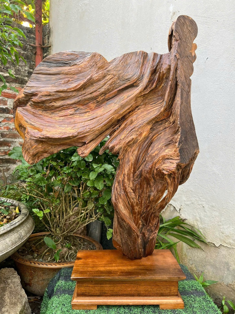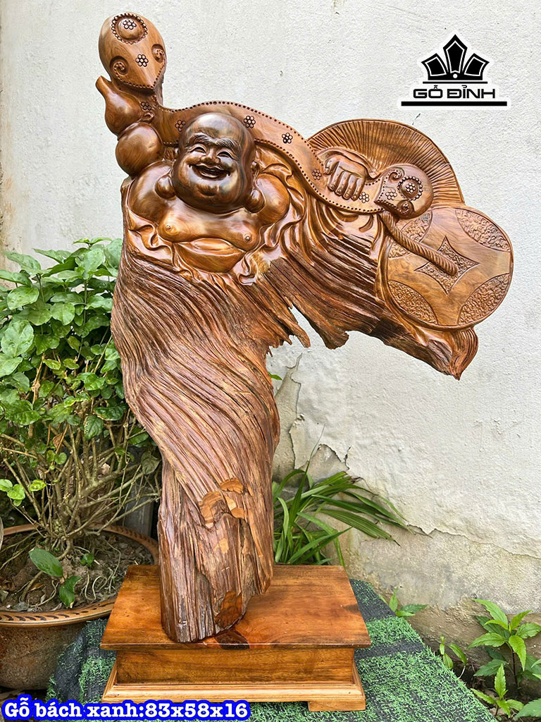 Tượng Phật Di Lặc Gỗ Bách Xanh Cao 83 Ngang 58 Sâu 16 (cm)