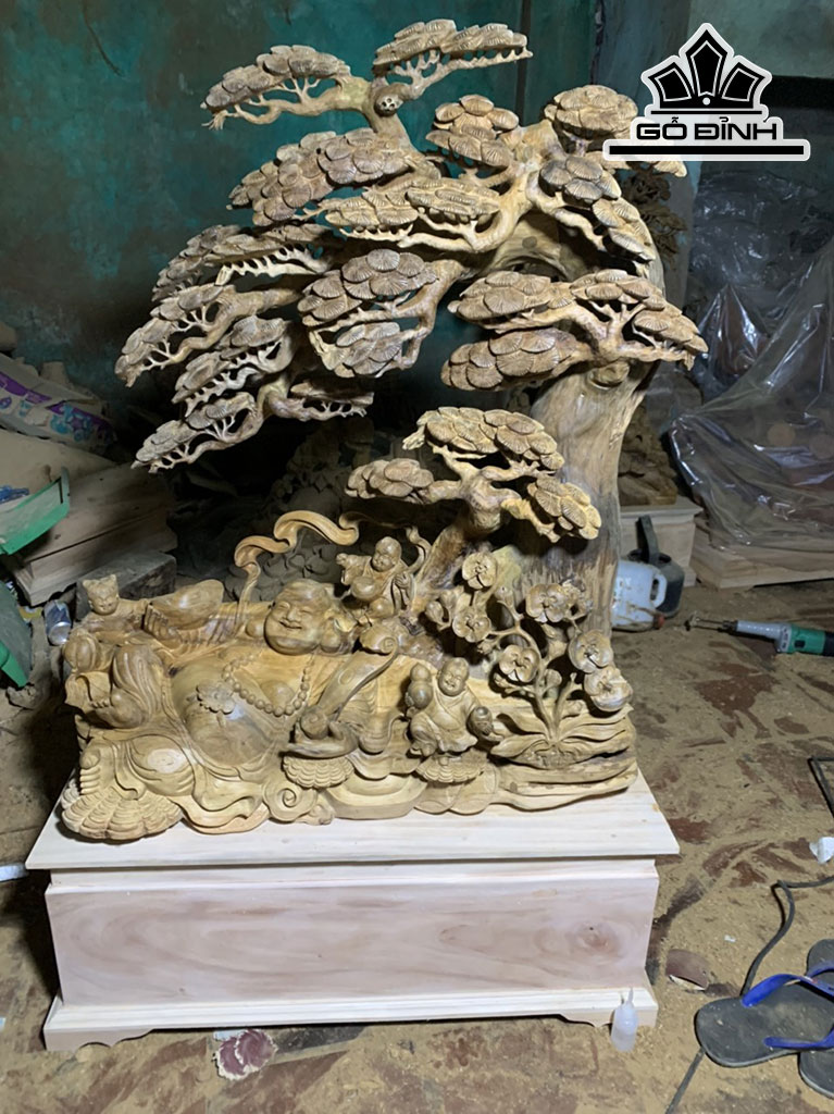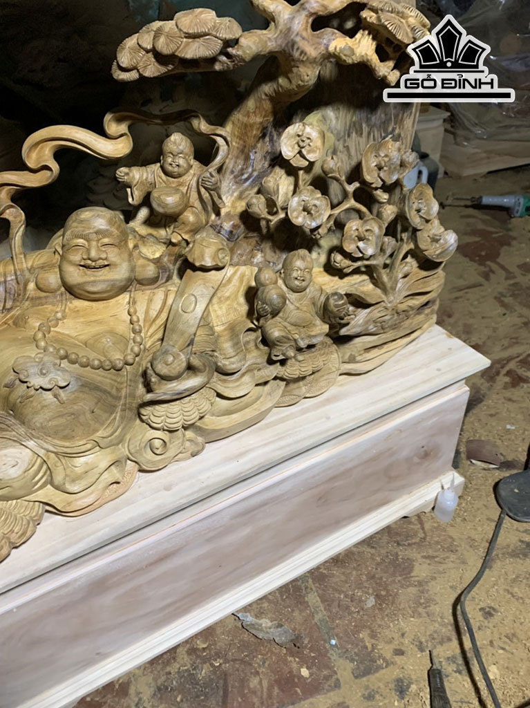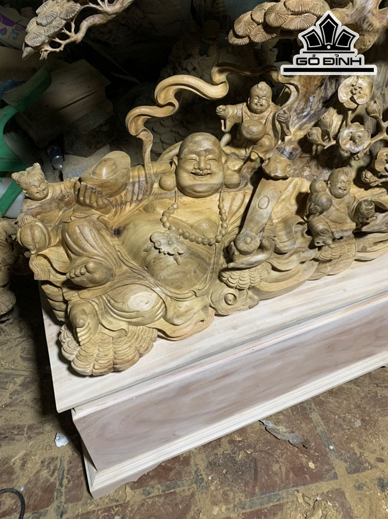 Tượng Phật Di Lặc Gỗ Bách Xanh Cao 91 Ngang 75 Sâu 30 (cm)