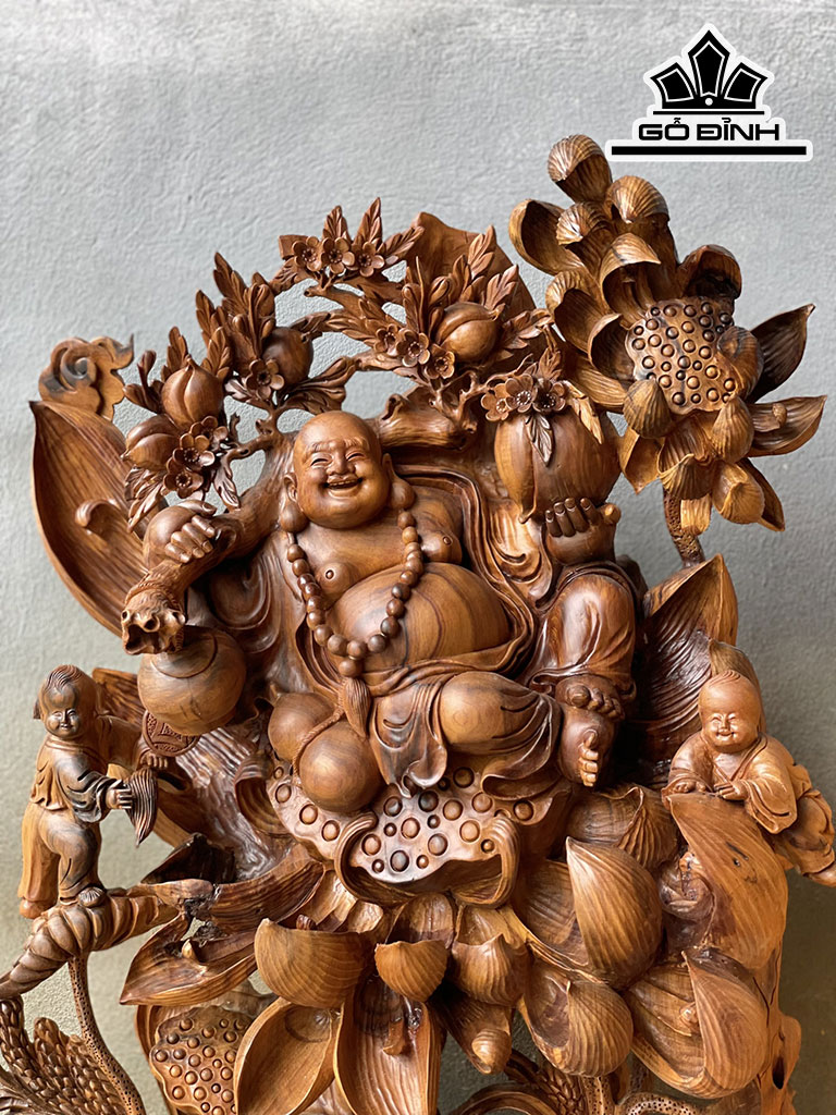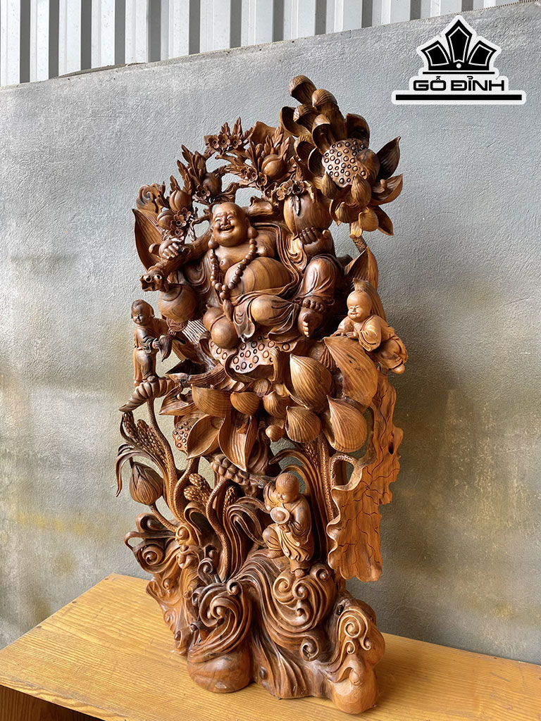 Tượng Phật Di Lặc Gỗ Bách Xanh Cao 93 Ngang 50 Sâu 26 (cm)