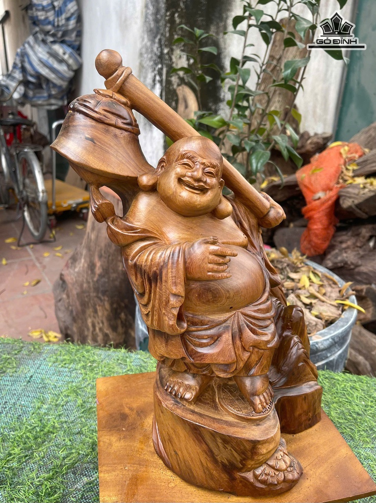 Tượng Phật Di Lặc Gỗ Bách Xanh Cao Cả Kỷ 47 Ngang 26 Sâu 20 (cm) - Kỷ Cao 10 (cm)