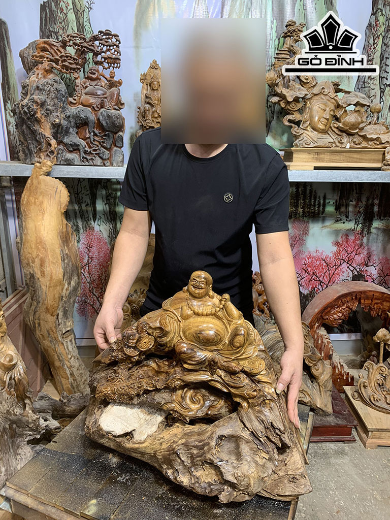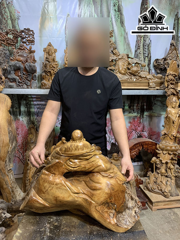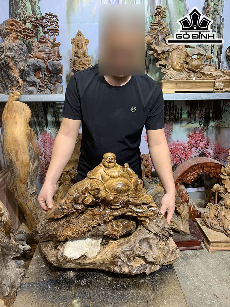 Tượng Phật Di Lặc Gỗ Bách Xanh Cao Cả Kỷ 47 Ngang 65 Sâu 33 (cm)