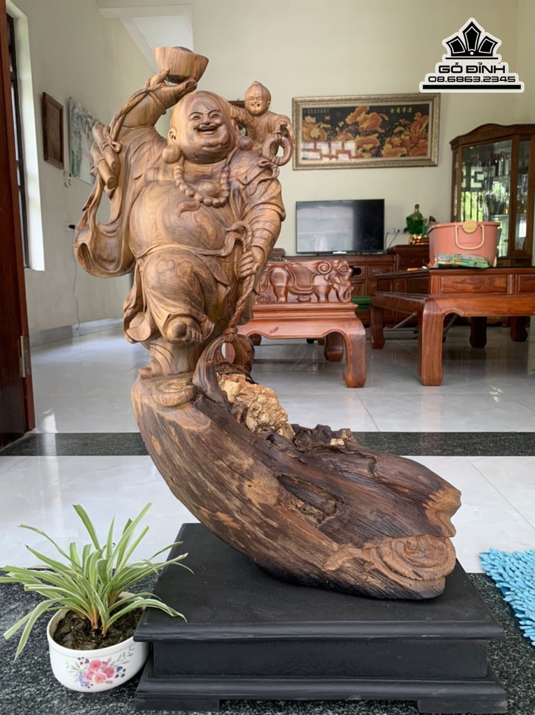 Tượng Phật Di Lặc Gỗ Bách Xanh Cao Cả Kỷ 76 Ngang 32 Sâu 25 (cm)